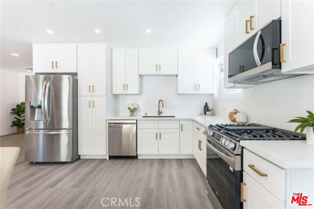 This newly remodeled, 3Br 2Ba custom-built property offers clean lines, high ceilings, abundant natural light, and premium finishes throughout. At the center of the home is a chef-level kitchen featuring stainless steel appliances, custom cabinetry, quartz countertops, and an oversized island anchoring the open-concept layout. The living and dining spaces flow effortlessly to the private yard. This Property modern living style offers recessed lighting, laminate flooring, efficient heating and cooling, , boasts exceptional curb appeal and features a pristine open-concept floor plan with recessed lighting and complementary new flooring. The stunning all-white kitchen is equipped with abundant cabinets, ample counter space, brand new stainless steel appliances, and an adjoining dining area. WATER AND GAS INCLUDED IN LEASE /PAID BY OWNER. Conveniently located near schools, restaurants, grocery stores, parks, Canyon Plaza Shopping Center, and the 5 and 170 freeways. 2 PARKING CAR PORT SPACES INCLUDED. Everything is brand new!