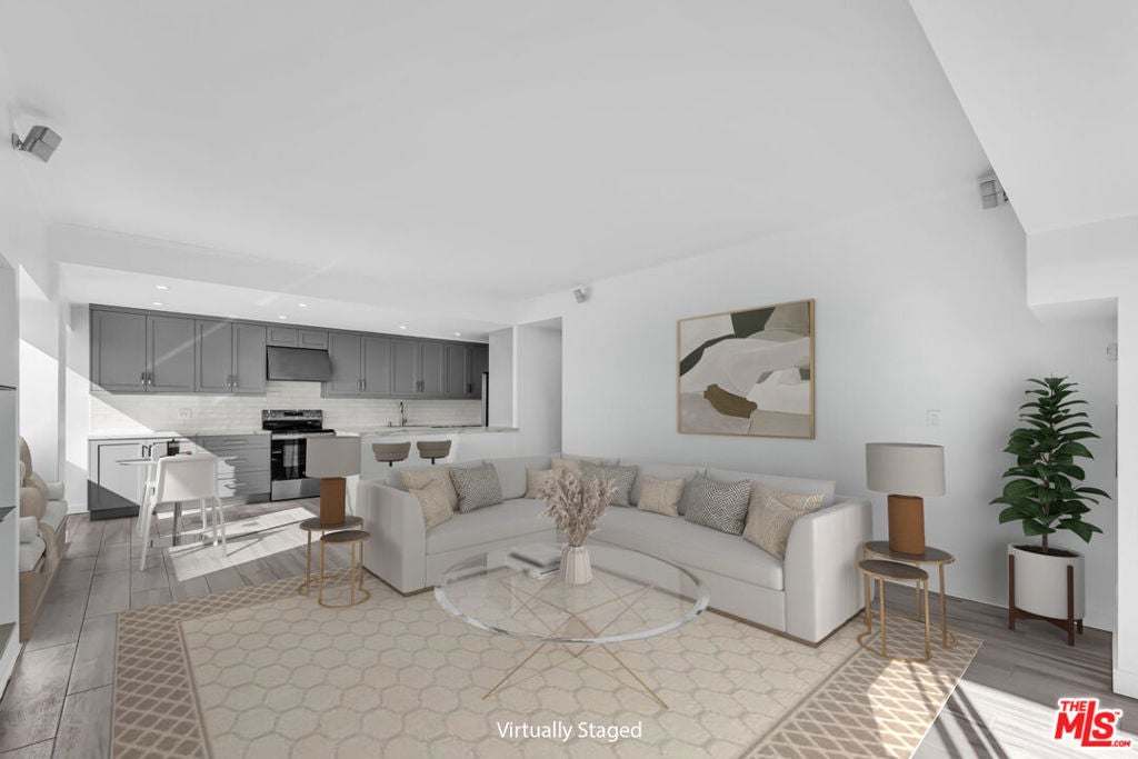 Compass is truly proud to present Residence 1106 to the open market. The staging in these photos is the magic of AI, but those views are 100% unedited and REAL! High-floor view residences in this coveted building very rarely come available. Massive city lights views to the East and South bring in tremendous natural light all day long, in your sanctuary -- 14 stories above terra firma -- in the highly-desirable Westview Towers. Residence 1106 showcases a remodeled custom kitchen with substantial cabinet space for the well-stocked chef, a professional exhaust hood, and expansive counter surface area. Additional built-in custom cabinetry is found throughout the home. Tall ceilings add volume to the spaces, and as an end-unit it shares only one wall. Two bedrooms with city views and room for king-sized beds complete this offering. All bedroom closets feature closet systems. This is the ideal lock-and-go landing pad, a pied-a-terre, or your primary residence. When you're ready to wind down, visit the heated pool and spa on the view terrace or sweat out the day in the private saunas. Westview Towers also offers its residents 24-hour valet parking, 24-hour front desk concierge & security, Electric Vehicle chargers, included basic cable & internet, private dog park, fitness center and strong reserves. [Some photos depict virtual staging. AB723 disclosure - Original un-staged photos found in the public website link within the listing. The HOA allows laundry to be installed in-unit and has plans for a remodel of the pool deck - rendering shown.]