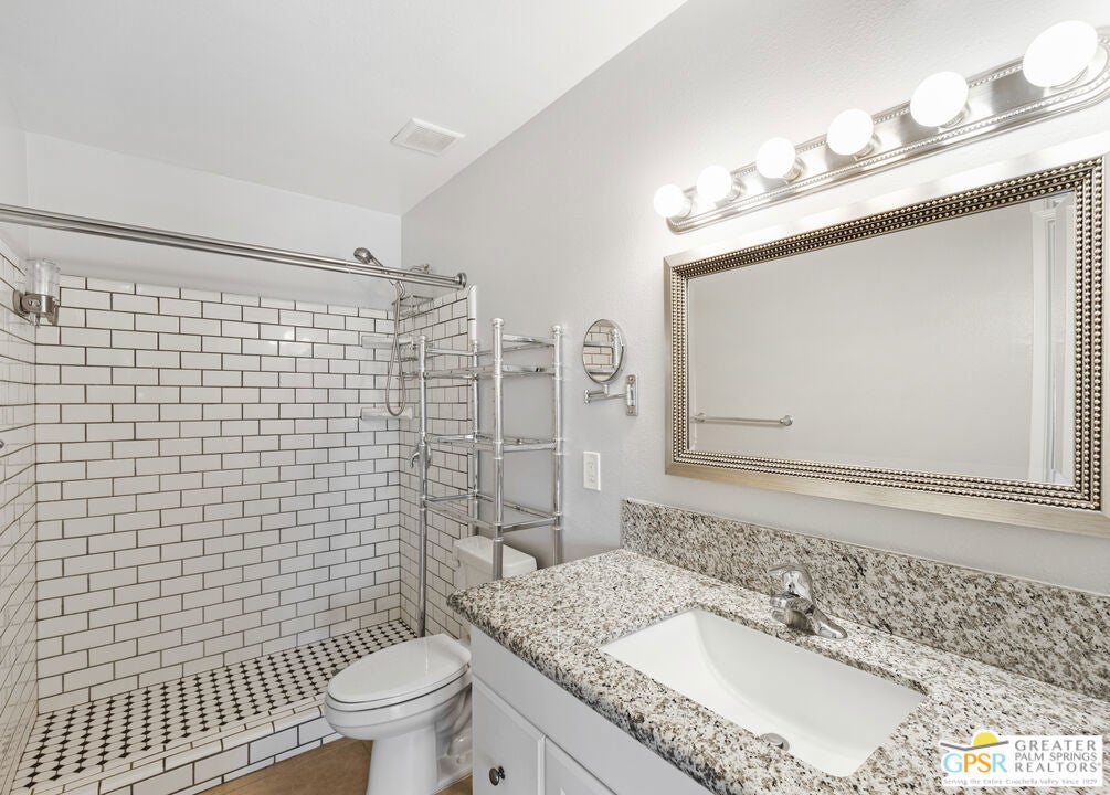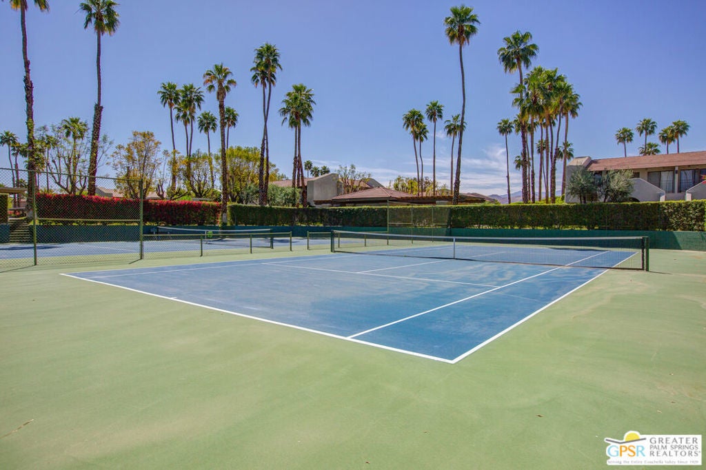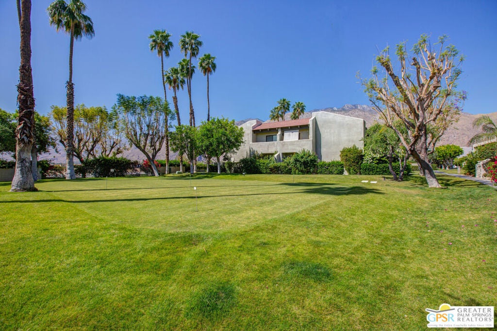 Sweet, adorable ground level 1 bedroom, 1 bath condo located in Case Verde in Central Palm Springs. Perfect for a first time home buyer, a weekender, a long term rental investor, or anyone looking to down size! This condo is near but still a healthy space away from the pool area. In front of the condo is a putting green/greenbelt area. Once through the outer gate in the spacious patio, turn around and note the glorious mountain views! This unit is ready to move in and adorn with your personal touches. Casa Verde is a pristine, well maintained complex. It is located a stone's through from the Convention Center, Casino and Downtown PS, The washer and dryer are located in the unit. Besides the spacious patio outside the front door, there is also a smaller patio outside the Primary bedroom. Palm Springs living doesn't get better than this!