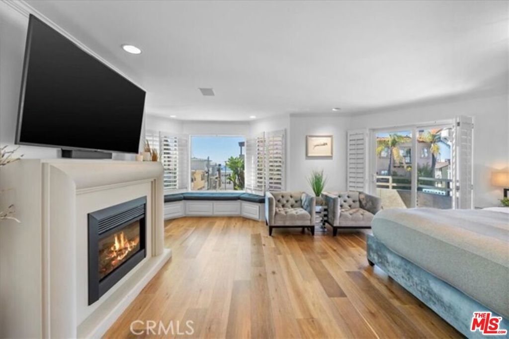 *Available for short term or long term rental 30 days minimum, dates negotiable* Welcome to The Highland Residence, a refined multi-level residence offering ocean and city views, thoughtfully curated living spaces, and a prime location just steps from downtown Manhattan Beach. The entry patio flows seamlessly toward the kitchen, setting the tone for a home designed to entertain with ease. The lower level includes a two-car garage complemented by a dedicated wine cellar, refrigerator, and a discreet laundry area enhanced by a chute from the upper floor. The primary suite is located on second level, same the other guest bedroom and serves as a private retreat. It features a spa-style bathroom with a jetted soaking tub, a shower with five water features, a generous walk-in closet, and a private patio with sweeping beach views. Just beyond the hallway, the additional guest bedroom offers an ensuite bath, walk-in closet, and built-in office. Every bedroom in the home includes its own ensuite bathroom and television. Ideal for everyone to wind down and enjoy their "me" time. The top level is designed for elevated living and entertaining, with a dining and living area that opens to an outdoor barbecue patio. Ocean views extend to the right, while city lights frame the left. A sleek fireplace and kitchen bar anchor the space, creating an ideal setting for sunset gatherings. Notably, this is one of the few homes in Manhattan Beach with air conditioning and is fully integrated with a whole house water filtration, offering modern comfort in one of the area's most sought-after locations. Take our beach cruisers down to the beach for the day and enjoy all of Manhattan Beach's best restaurants, shopping, and bars in the evening.