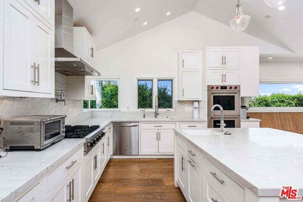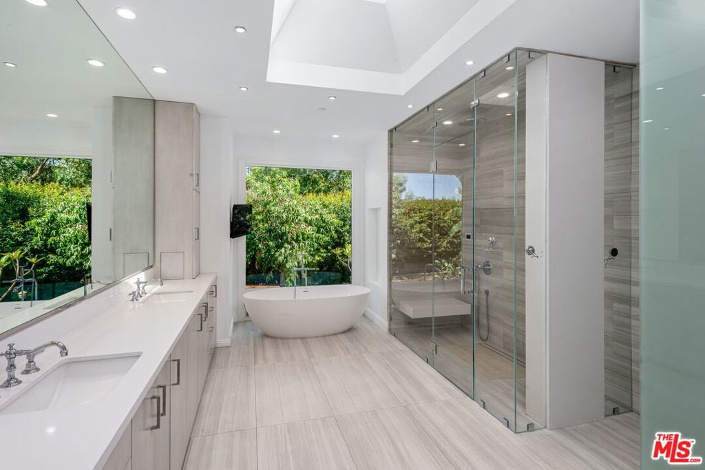 Fully gated south of the boulevard compound. Enter through the private gated entrance and follow the long drive to the landing of your property. Custom-built with the modern family in mind, the house features 6 bedrooms plus a bonus room (almost 400 sq feet) that can serve as a home office, gym, or 7th bedroom.The living wing comprises 3 bedrooms, each with an ensuite bathroom, connected by a central playroom. An additional bedroom is located upstairs, adjacent to the playroom. The primary suite offers all the comforts one would expect, including a TOTO toilet, two primary closets, and a steam shower. The playroom provides direct access to the backyard, which features a terraced vegetable garden and fruit trees (lemon, orange, apricot, apple, clementine, fig).Additional features include a fully automated exterior watering system, abundant storage, two extra refrigerator-freezers in the garage, three wine refrigerators in the California basement, two Viking double ovens, two Wolf double ovens, a Sub-Zero 36" refrigerator, and a 36" freezer. The home is equipped with Lutron automation for interior and exterior landscape lighting and air conditioning, three tankless water heaters, and five zones of air conditioning. There is also a Tesla charging station. The property comes with weekly gardening and pool service provided by a professional service, and private housekeeping services are available