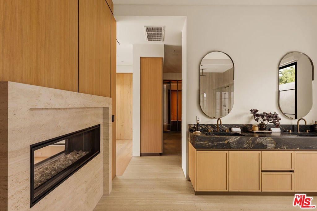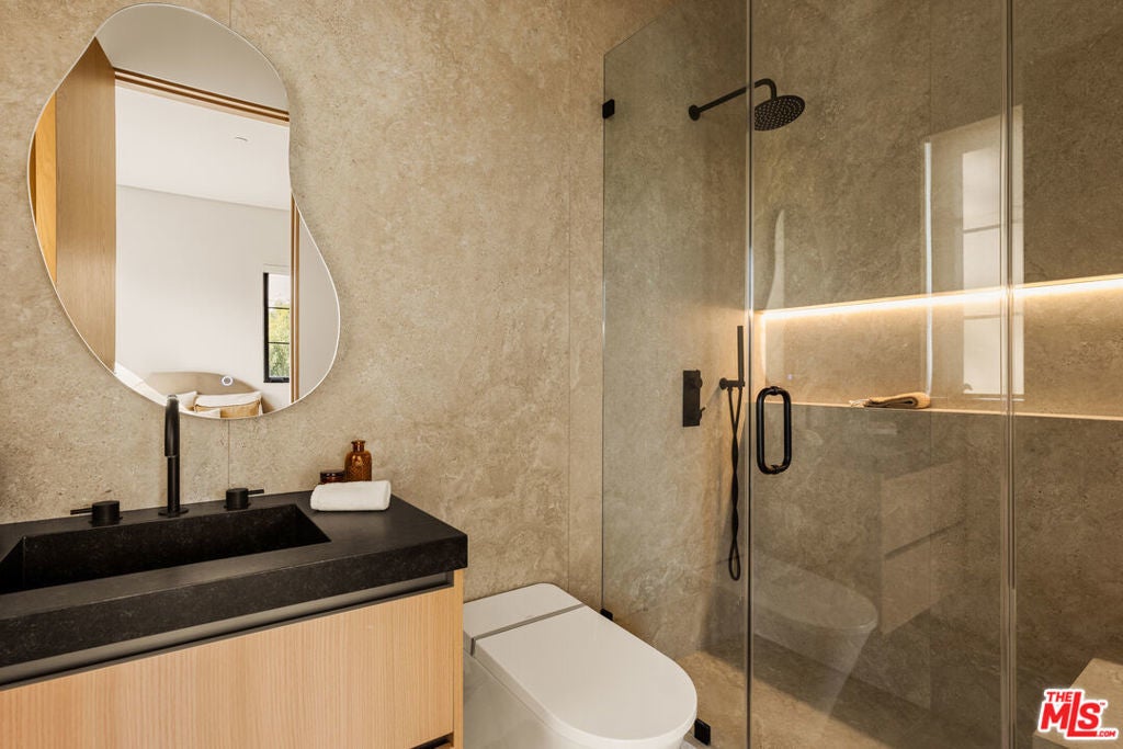 Newly built construction by MLR Development offering elevated modern living in prime Valley Village, just moments from Colfax Elementary. This 5-bedroom, 6-bath residence features soaring ceilings, an open-concept layout, and expansive glass that creates seamless indoor-outdoor flow throughout the main living spaces. The chef's kitchen is equipped with Miele appliances, custom cabinetry, dual prep counters, and an oversized island ideal for everyday living and entertaining.The private backyard is a true retreat, complete with a pool, spa, outdoor kitchen, and fire pitperfect for hosting and relaxing alike. Designed with both comfort and functionality in mind, the home also includes a private home theater, an ensuite guest bedroom on the main level, and thoughtfully curated finishes throughout. Upstairs, four additional ensuite bedrooms are arranged for privacy and ease, anchored by a full laundry room.The spacious primary suite showcases vaulted ceilings, a private balcony, a spa-like bath, and an oversized custom walk-in closet. With smart-home features and a layout ideal for both entertaining and everyday living, this residence presents a rare opportunity to tour a newly built home in one of Valley Village's most desirable neighborhoods.