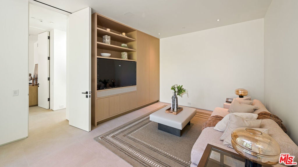 Completely Renovated & Move-In Ready. Perched atop an ultra-private knoll in the prestigious Trousdale Estates, this recently built and fully remodeled residence is secured by stately contemporary gates and commands panoramic views stretching from city lights to the Pacific Ocean. Blending practical simplicity with striking elegance, the home offers both refinement and comfort at every turn. A sweeping 300+ ft driveway leads to dramatic grounds and a residence designed for modern living. The grand formal foyer opens to a 75-ft art gallery hallway with soaring 12-ft ceilings, skylights, and custom sandstone floors an architectural showcase bathed in natural light, ideal for displaying a world-class art collection. The oversized living room is wrapped in floor-to-ceiling glass walls that frame breathtaking vistas. Designed for seamless entertaining, this space connects effortlessly to the new saltwater pool and expansive outdoor living areas. The gourmet, eat-in kitchen is a chef's dream, centered around a striking fireplace and appointed with top-tier appliances, a generous butler's pantry, and bespoke finishes. The adjacent family room continues the home's theme of glass-wrapped spaces and panoramic outlooks. The primary suite is a private retreat, complete with a refreshment station, fireplace, dual spa-inspired bathrooms, expansive walk-in closets, and an adjoining study. Three additional bedroom suites ensure comfort and privacy, complemented by a large laundry and utility room as well as an elegant arrival lounge . For future flexibility, the property offers the option to expand onto the additional lot - or preserve it as a natural extension for enhanced privacy and security.