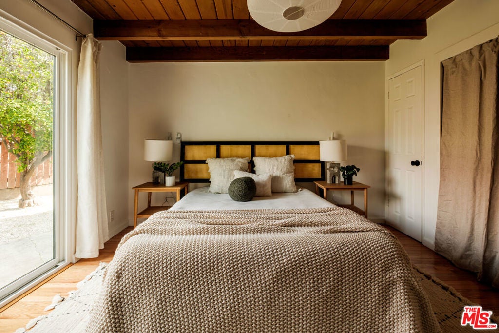 Showcasing post and beam perfection, the O'Keefe Residence features gorgeous wood ceilings and solid red oak floors, with a warm, architectural tone and open-concept layout that allows natural light to flow effortlessly throughout. This true midcentury modern retreat was also the original model home for the private Annwood Terrace enclave in Alhambra. Built in 1960 by John O'Keefe, this architectural gem sits on a sprawling nearly-quarter-acre lot at the end of a private road, with only one adjoining neighbor. Expansive living spaces connect seamlessly to the outdoors, offering endless possibilities for entertaining, future expansion, or peaceful everyday living. Thoughtfully updated throughout, the home features a renovated kitchen with quartz terrazzo counters and custom wood shelving and accents handcrafted by the current owner. Newer solid oak floors run throughout, complemented by refreshed bathrooms with chic new flooring. Major system upgrades include updated electrical, upgraded plumbing, zoned air conditioning, dual-pane windows, and more. Outside, a classic breezeblock wall frames the space, with a generous lot that invites gardening, alfresco dining, and creative expansion, with mature lemon, guava, kumquat, and passionfruit trees already in place. Solar panels (to be paid off at closing) enhance energy efficiency and lower utility costs, aligning beautifully with the home's sustainable lifestyle. Live out your urban farm dreams all while being moments from cultural and dining hubs in downtown Alhambra, San Gabriel, old town Pasadena and DTLA. Located in Alhambra and perfectly positioned near the acclaimed Mission District of San Gabriel, you're surrounded by a world-class culinary scene. Alhambra is celebrated as a true foodie destination, home to over 250 restaurants offering global flavors - from Asian fusion and Michelin-recommended favorites to beloved local classics and trend-setting dessert spots. Stroll Main Street for cafes and restaurants, or explore the vibrant Mission Drive corridor, including the popular Blossom Market Hall just minutes away. Farmers market lovers will appreciate the weekly Alhambra market, adding to the area's lively community feel. Whether you're enjoying a casual breakfast out, exploring dim sum and Asian-inspired cuisine along Main Street or ending the evening with dessert nearby, this location delivers. A truly unique opportunity to own a distinctive midcentury home on an extraordinary amount of land, in one of the LA area's most dynamic neighborhoods.