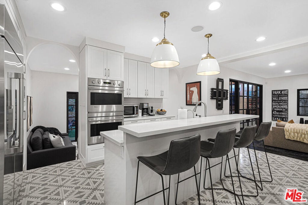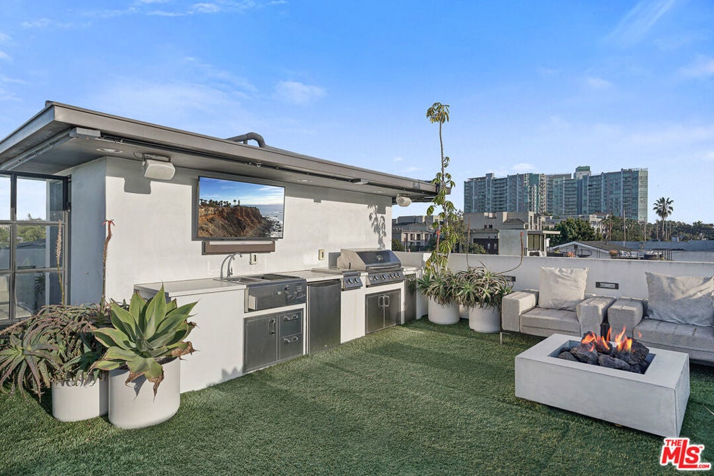 An exquisite contemporary architectural home located in the prestigious Marina del Rey neighborhood of Los Angeles. In this flawless furnished residence you will find six bedrooms, four bathrooms, a gorgeous pool, and an endless amount of entertaining areas. Custom iron doors give way to natural light throughout the home. Step inside to a bright and open floor plan that creates a seamless flow between indoors and out. It has a well-appointed gourmet kitchen on the first floor, which is sure to please even the most discerning chefs, equipped with a wide variety of top-of-the-line appliances, as well as a spacious family room, a cool secret kids play room, built-in dining booth, living room, bar, bathroom, first bedroom, and a single car garage for your convenience. As you enter the patio, you will find a custom-built barbecue and bar that are sure to enhance your outdoor dining experiences for year-round enjoyment, whether you are hosting a party or simply relaxing in the ambiance of the area. Take a dip in the pool and enjoy a little time in the sun or relax in the spa or in the two-person sauna. This outdoor oasis continues with a meticulously landscaped backyard that offers everything you could desire from an outdoor oasis. A spacious, dreamy primary bedroom on the second floor is separated from a luxurious oversized bathroom with a walk-in closet and a luxurious oversized bathroom with iron pocket doors. The other four bedrooms on this floor are also set up as a home office with custom-built-in cabinets, an at-home gym, and two guest bedrooms, making for a total of six bedrooms. On the rooftop deck, you'll discover ample opportunities for entertaining with a TV, surround sound speakers, a second built-in bar, multiple fire pits, sofa pit, sunbathing lounges, and breathtaking 360-degree views! Experience a sense of detachment while enjoying the comforts of Westside living in this luxurious retreat!