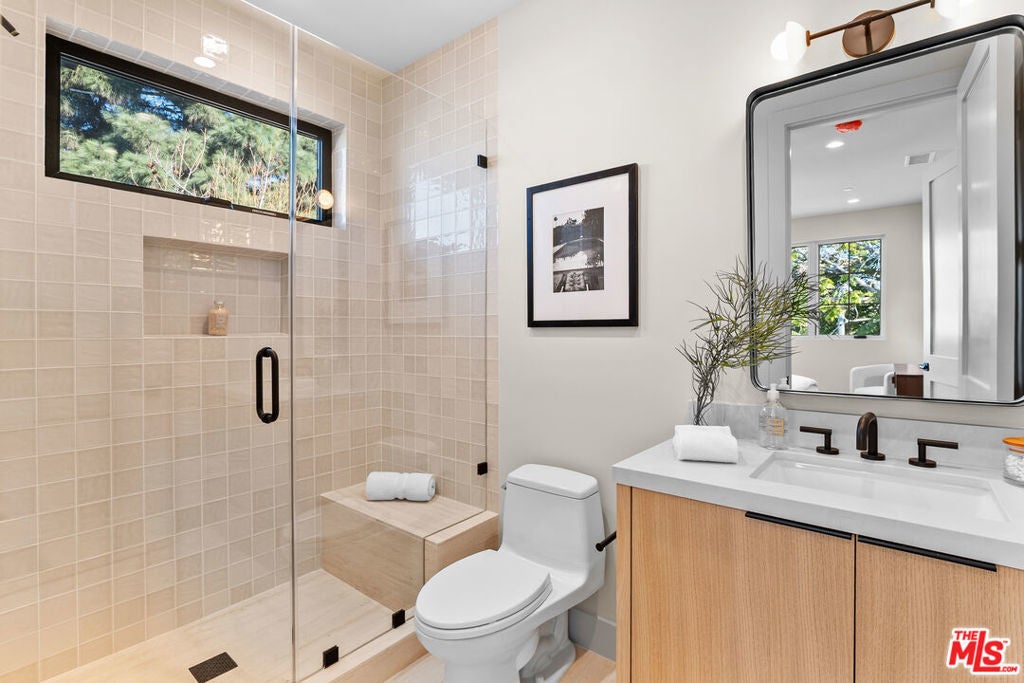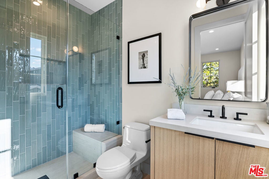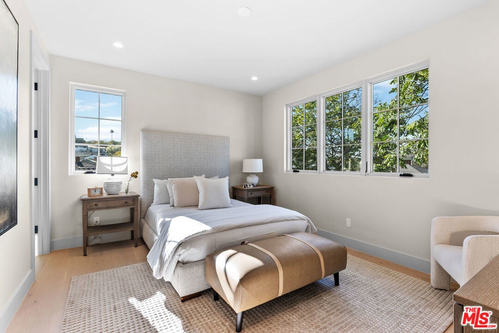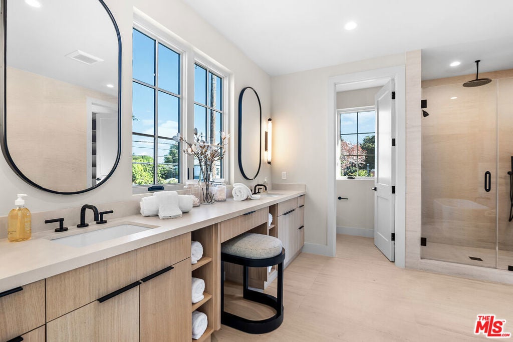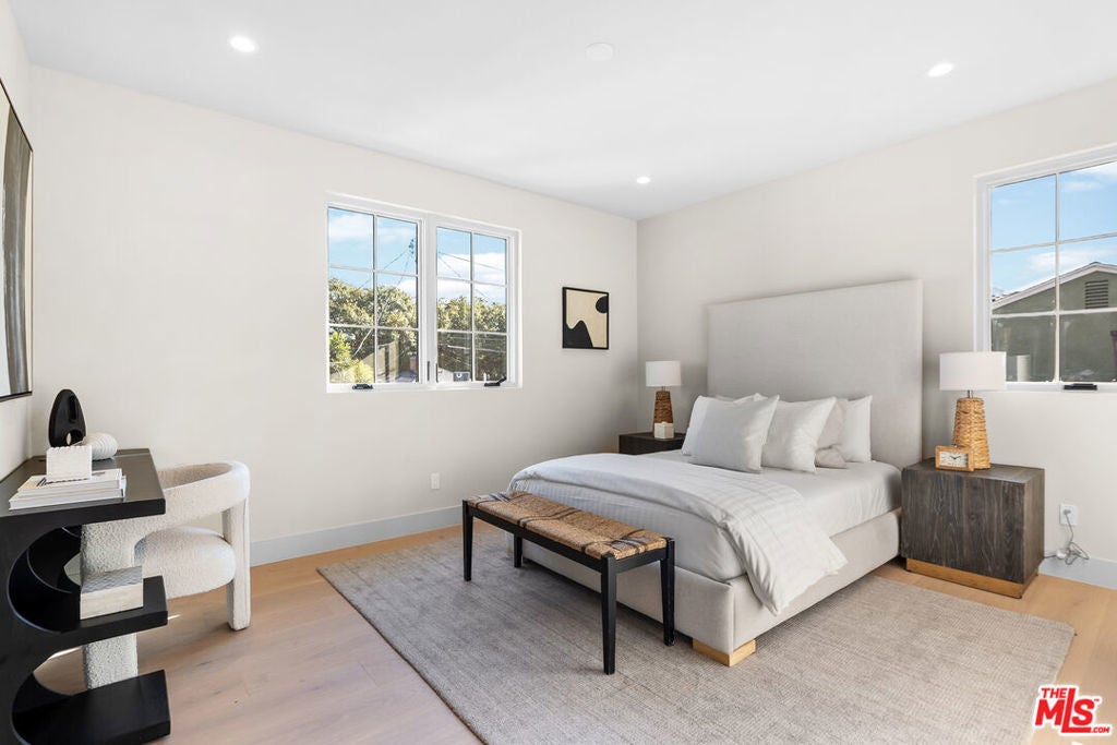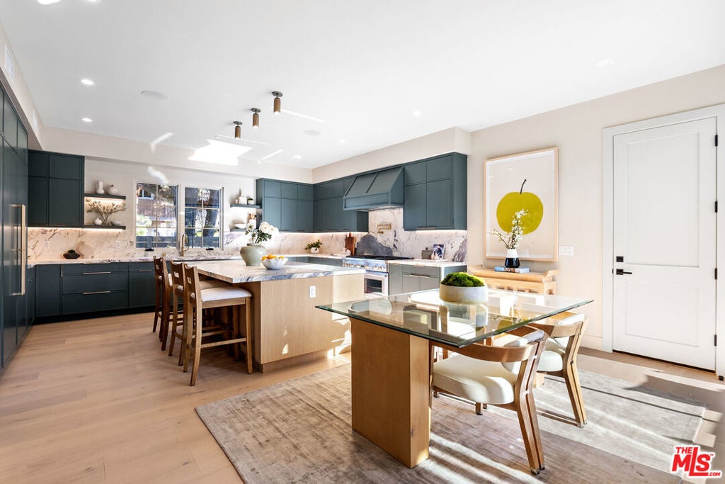 A newly built traditional home by Smart Builders, known for thoughtful craftsmanship and custom design, set on a charming corner lot along tree-lined streets in the heart of Mar Vista and within the highly regarded Mar Vista school system. Inside, the first floor welcomes you with a formal dining room featuring Fleetwood sliding doors found throughout the home and an elegant living room highlighted by custom moulding and a stunning marble slab fireplace crafted from Antolini Breccia Capraia marble.The gourmet kitchen is a true showpiece, featuring matching marble countertops, rich green cabinetry, and a white oak island, complemented by a full suite of Thermador appliances including range, refrigerator and freezer, microwave, and dishwasher, while the main level also includes a beautifully appointed powder room. A generously sized downstairs secondary primary suite larger than a typical bedroom offers exceptional flexibility for guests or multigenerational living.Upstairs, the expansive primary suite serves as a private retreat, featuring a large walk-in closet, a spacious spa-like bathroom, and a private balcony off the bedroom. Three additional upstairs suites provide ample space and privacy, each with its own well-appointed bathroom, along with a conveniently located second-floor laundry room. Thoughtfully designed throughout, this exceptional residence seamlessly blends classic traditional elegance with modern luxury in one of Mar Vista's most desirable neighborhoods.