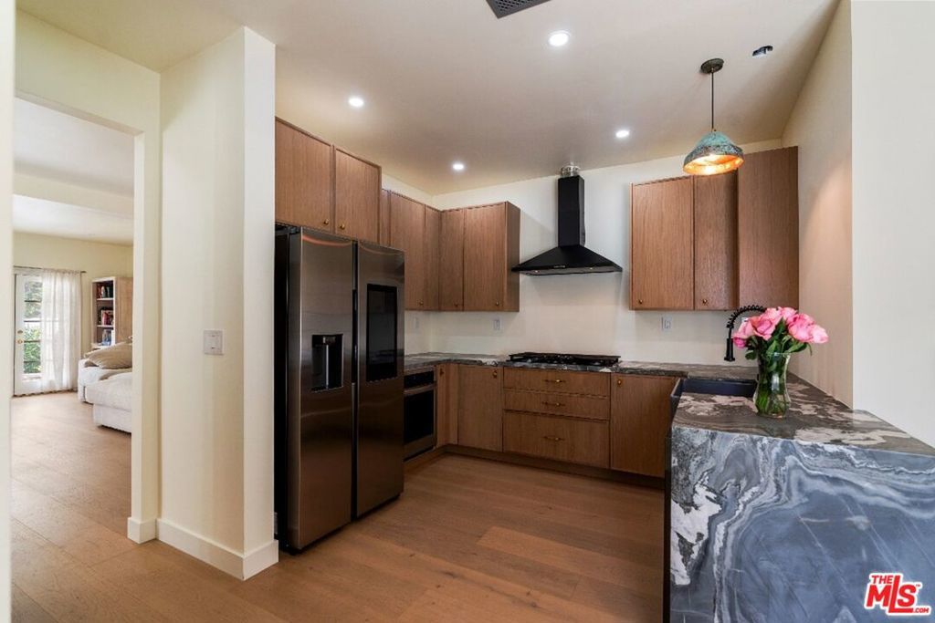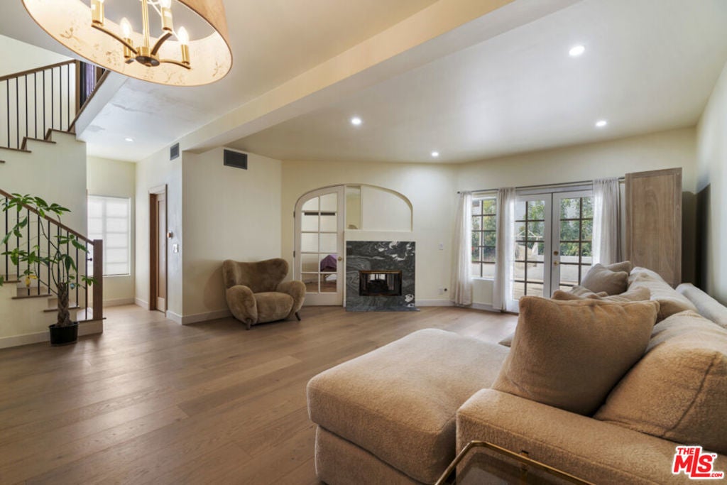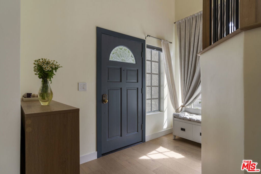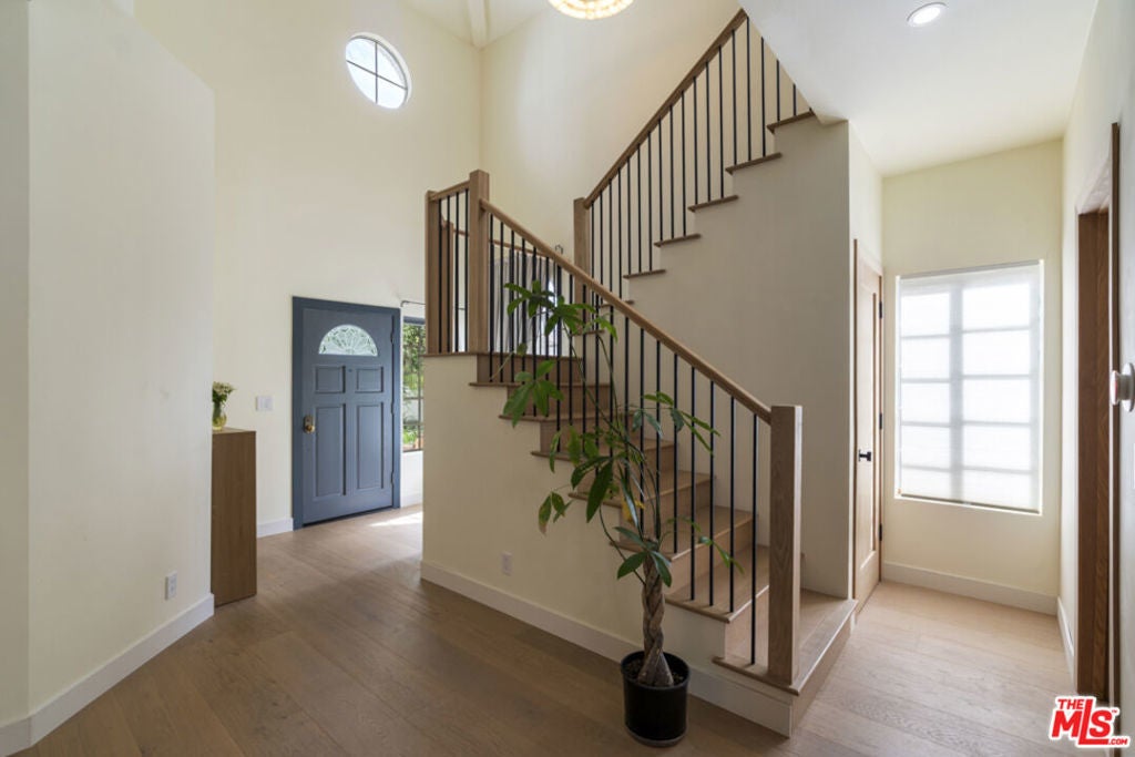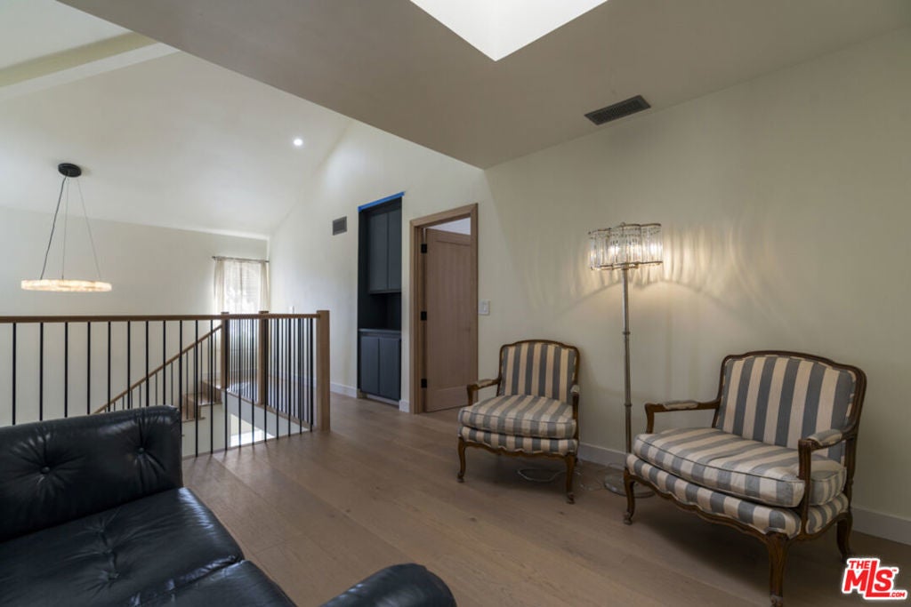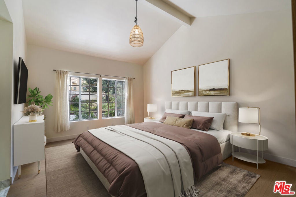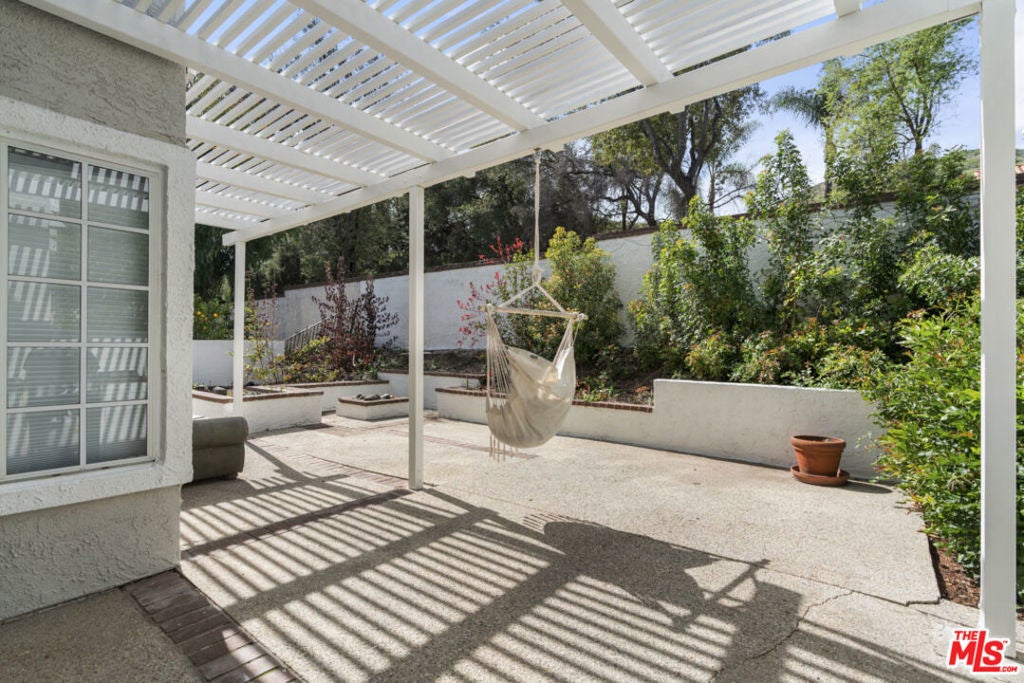 Stop searching. Call your moving company. It's time to submit your offer. This completely renovated North Ranch townhome in the Braemar community of Westlake Village offers 2,057 square feet, 2 bedrooms, and 3 bathrooms with high-end, thoughtful finishes throughout. Flooded with natural light, the home is complemented by soaring ceilings and oversized windows that create volume and openness from the moment you enter. A dramatic two-story entry showcases a Timothy Oulton Frozen Ring pendant suspended above the staircase, establishing a striking architectural focal point. White oak floors flow seamlessly across both levels, paired with custom white oak cabinetry and matching stair detailing for a cohesive, intentional design. The powder room is finished with limestone tile, an onyx sink, and curated fixtures. The kitchen balances form and function with marble countertops, a waterfall stone peninsula, GE and Samsung appliances, and a farmhouse sink. The main living area centers around a statement marble fireplace and opens through French doors to a private landscaped patio designed for effortless indoor-outdoor living. Upstairs, a versatile flex space offers room for a home office, gym, or secondary lounge. The primary suite delivers a spa-level experience with Calacatta marble floors and walls, a freestanding soaking tub framed by oversized windows, a glass-enclosed shower, and a custom vanity. The guest suite is complete with its own sitting area and a beautifully finished custom bathroom. Located in North Ranch, minutes from Boccaccio's, The Landing Grill & Sushi Bar, and The Promenade at Westlake with boutique retail and dining. HOA amenities include a community pool, spa, tennis and basketball courts, and a private park.