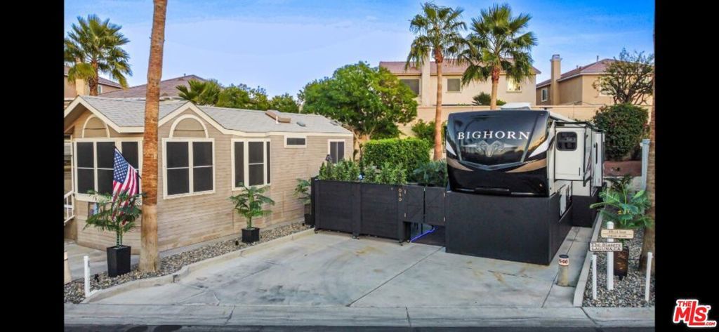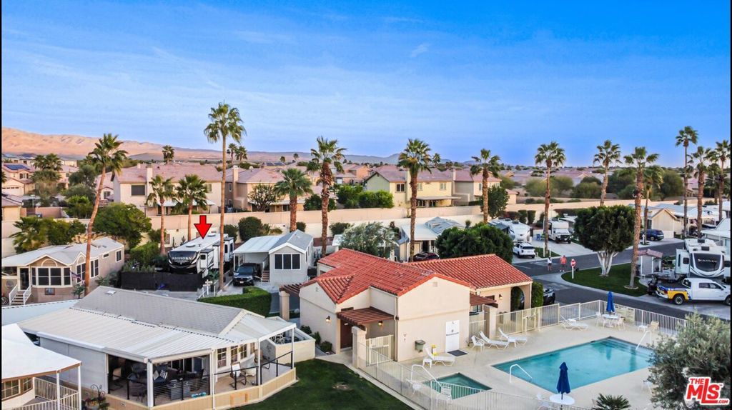 Unique Opportunity Awaits You!!! Just Listed! You Own the Land. This unique, premium lot is located on the quiet East wall of this private Resort community. It is located just 47 steps from one of the 4 satellites of the community where you can relax and unwind night or day by the pool and jacuzzi. And for your convenience, full restrooms, with walk in showers and a laundry facility are located in the same building. The lot and RV package includes a 'like new' 2019 Heartland, Big Horn, 44ft luxurious RV. Model #3970RD, with 5 slideouts. The decor is decorated in deep browns and earth colors. The RV is fully stocked with all the living necessities. The living space is fully furnished with 3 sets of reupholstered, leather, theater style, wall hugging, reclining chairs. As you enter the property, you are greeted with a semi private outdoor patio that includes a raised bar area, 2 firepits, a BBQ and umbrellas. This is an excellent space to entertain and enjoy the beautiful desert outdoor..... Or, curl up with a book and listen to the silent sounds of the night. This all located in a 55 community that has a 3 par golf course, chipping green, putting green, 9 hole mini golf, pickleball and tennis courts, bocce ball, an indoor shuffleboard courts, 2 clubhouses with pools and Jacuzzies and an additional 4 satellites with pool, jacuzzi and mail boxes. This is all within a 24 hour gate guarded community ,of 801 lots, that consist of a combination of Park Models and RV lots, where you own the land. The resort has a limit of 270 day occupancy. It is. a perfect place to spend your holidays in the sunshine. A must see and a great opportunity to own a beautiful piece of our little paradise in the Desert.