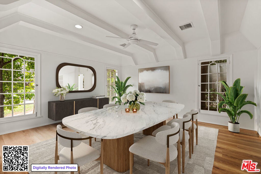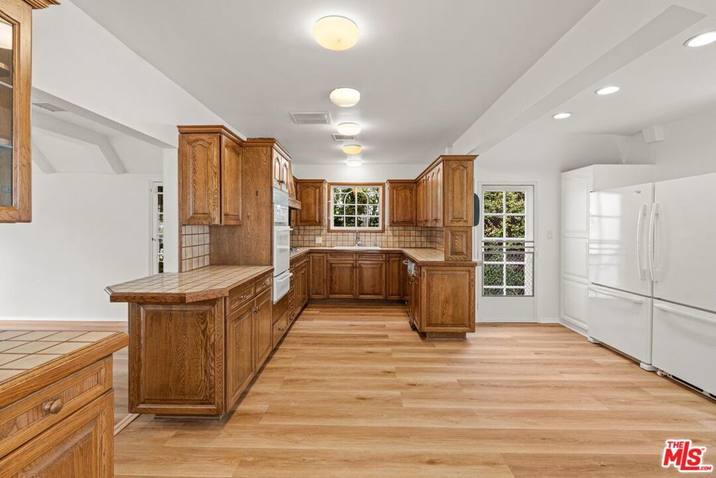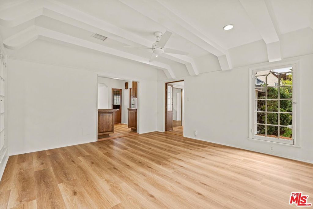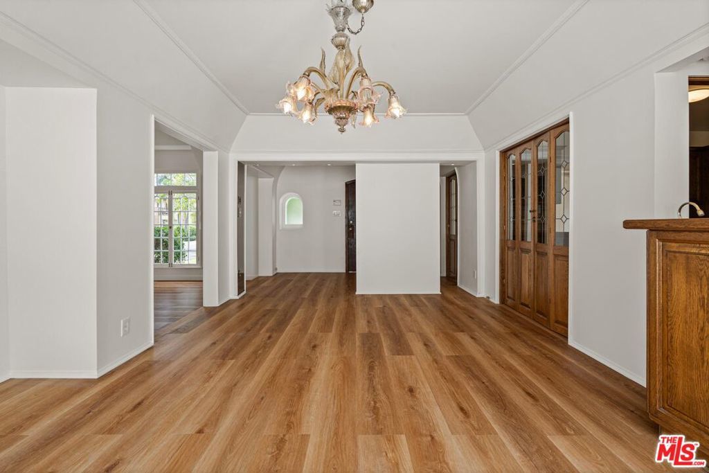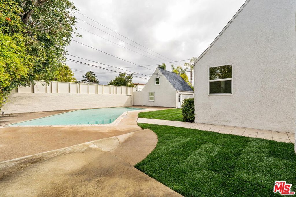 Tucked along one of the most desirable, tree-lined streets in the world renowned Beverly Hills Flats, Elm Drive, this sunlit Traditional residence balances English Tutor architectural with a charm. A gracious front yard with a circular driveway, leads to the formal entry of this home, and into the expansive living and dining rooms with newly placed hardwood floors and painted walls throughout. The kitchen is accompanied by a breakfast area and flows seamlessly into the family room, and dining room complete with a wet bar. The residence offers four bedrooms and three bathrooms. The backyard boasts newly laid down grassy lawn and a large pool, all framed for privacy with a spacious car port that extends to a two-car garage and large storage loft above. The home offers a sense of calm and privacy just moments from the energy of Beverly Hills' famous shops, dining, and cultural destinations.