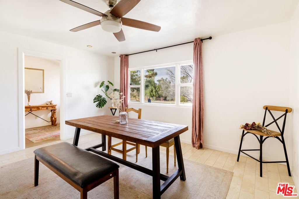 A 6-bedroom, 5-bath pool home on a generous lot in Yucca Valley, just minutes from Joshua Tree National Park, nearby hiking trails, restaurants, and the shops along Highway 62. Five of the six bedroom have en-suite, providing comfort and privacy throughout. The spacious kitchen opens seamlessly to multiple living areas, including a great room with fireplace, an inviting family/yoga room with barn door, utilized as a 6th bedroom/private retreat, and a formal dining room highlighted by a modern electric fireplace and abundant natural light, or possible 7th bedroom. The expansive rear wood-deck patio overlooks the in-ground vinyl pool, creating a perfect setting for entertaining, relaxing, or retreat-style living. The large driveway offers ample parking, with additional storage sheds at the rear of the property. Cooling is provided by a swamp cooler and mini-split systems, with heating via mini-splits and fireplaces. With its flexible layout and serene desert surroundings, this property offers exceptional potential as a private residence, vacation getaway, or rental opportunity, and is well suited for wellness, yoga, or meditation retreats.