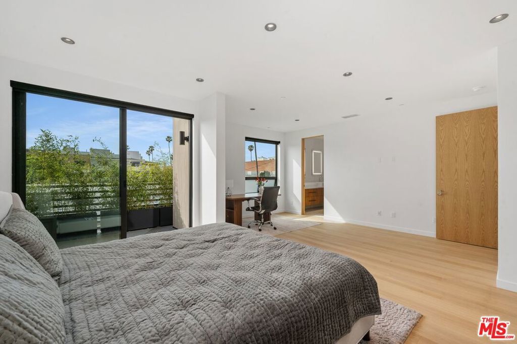Welcome to 212 Bay Street, a stunning collection of three brand new, architecturally refined townhomes in the Ocean Park neighborhood of Santa Monica, just steps from the beach! Although this is already a custom property, the seller/builder is open to further customization for the buyer. Only two are still available! This unit, 102 is beautifully scaled with abundant natural light and has an enormous patio which wraps around three sides of this townhome! This is a meticulously built new project in which each residence showcases a blend of warm, natural materials and modern craftsmanship. Interiors boast voluminous open-plan living spaces with 10-foot ceilings and are surrounded by doors leading to the abundant outdoor space. Gourmet kitchens serve as the centerpiece of each home, featuring stainless steel appliances (including 8-burner stoves), under-cabinet lighting, Indian Absolute Black Leather countertops and an island of extra polished & honed Bianco Carrara. This kitchen/dining opens seamlessly to the light-filled living room with a dramatic wall, featuring a 75-inch fireplace surrounded by Nero Marquina Polished porcelain and walnut walls with built-in shelving. Floating oak stairs with under-stair lighting takes you to the second floor with private living quarters which includes 2, two-bedroom suites. The primary retreat boasts a landscaped balcony and a sumptuous, spa-inspired bath with dual vanities, and a walk-in shower & tub enclosure designed with refined simplicity. Enjoy glorious sunsets and ocean breezes from the enormous roof-top deck with breathtaking city and beach views, including views of Shutters and Casa del Mar, a reflection of this truly rarified neighborhood. Secure, spacious garage with two side-by-side parking spots, epoxy floors and a massive steel door has plenty of room for storage. This trio of new townhomes embodies the best of contemporary coastal architecture & living, just moments from all that Santa Monica has to offer - it's acclaimed dining, boutique shopping, the beach and historic pier.