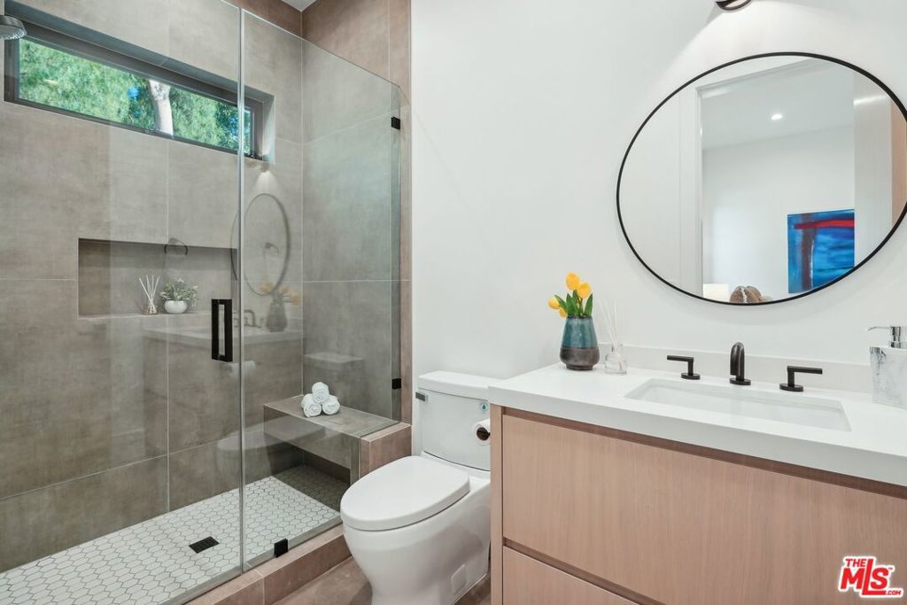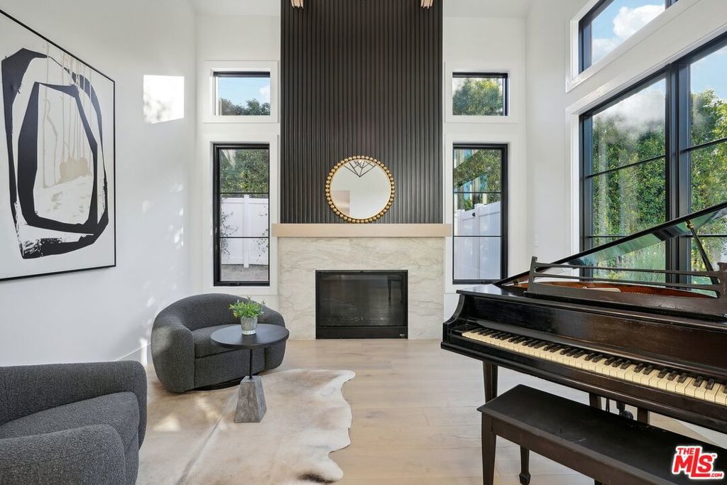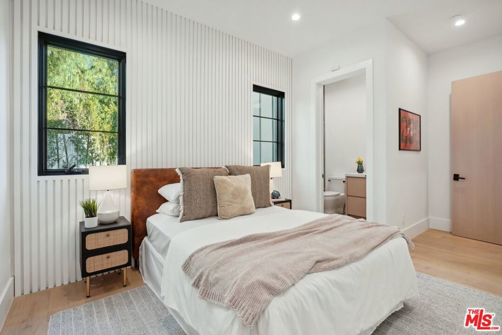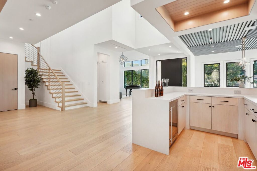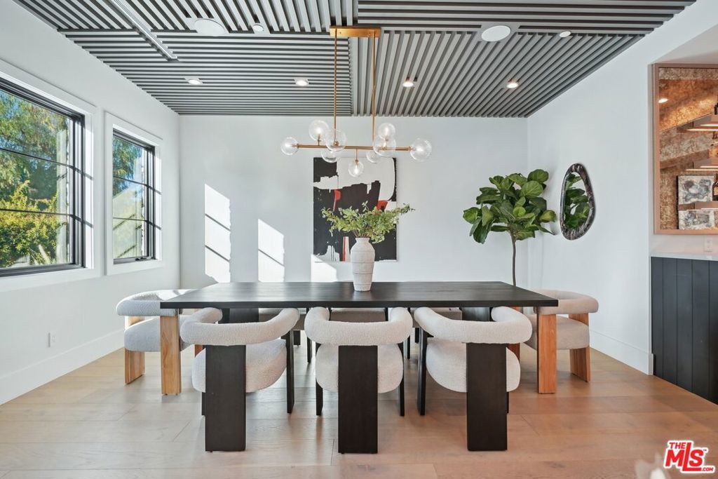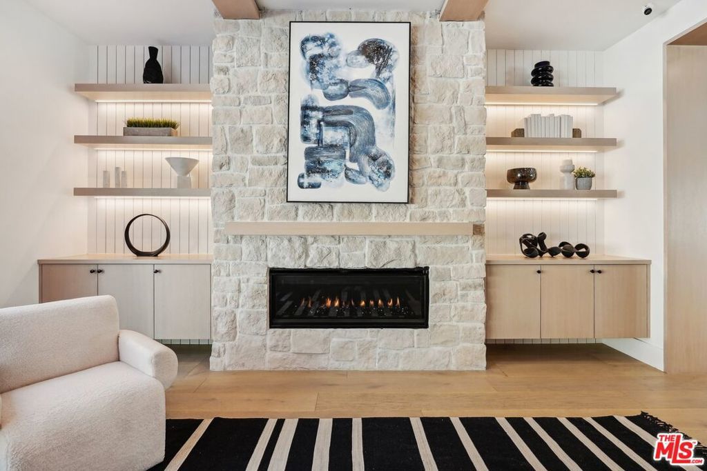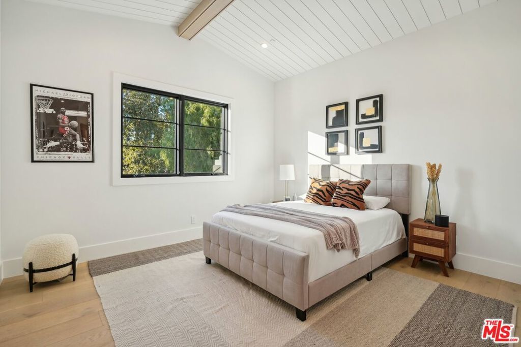 Discover the pinnacle of luxury in this brand-new gated estate located South of the Boulevard in the heart of Tarzana, CA. Built with the finest materials and high-end designer finishes, this secluded residence offers an exceptional living experience combined with the convenience of all the Valley has to offer. On the first floor, step through the oversized front door into an open-concept layout flooded with natural light from expansive windows and adorned with soaring ceilings. The living room, featuring a fireplace and two-story vaulted ceilings with exposed wood beams, exudes elegance. The formal dining room, perfect for hosting dinner parties and gatherings, is highlighted by a stunning wood slat ceiling. The gourmet kitchen is a chef's delight, boasting a massive center island with a breakfast counter, top-of-the-line appliances, a walk-in pantry, and a cozy breakfast nook. Adjacent to the kitchen, the family room offers a beautiful stone fireplace, built-in cabinetry, coffered ceilings, and pocket glass doors that transition effortlessly to outdoor living. Also on the main level, find a downstairs ensuite bedroom, an office with built-ins and a French door leading outside, a laundry room, a mudroom, a movie theater, and a dry bar with a wine fridge.