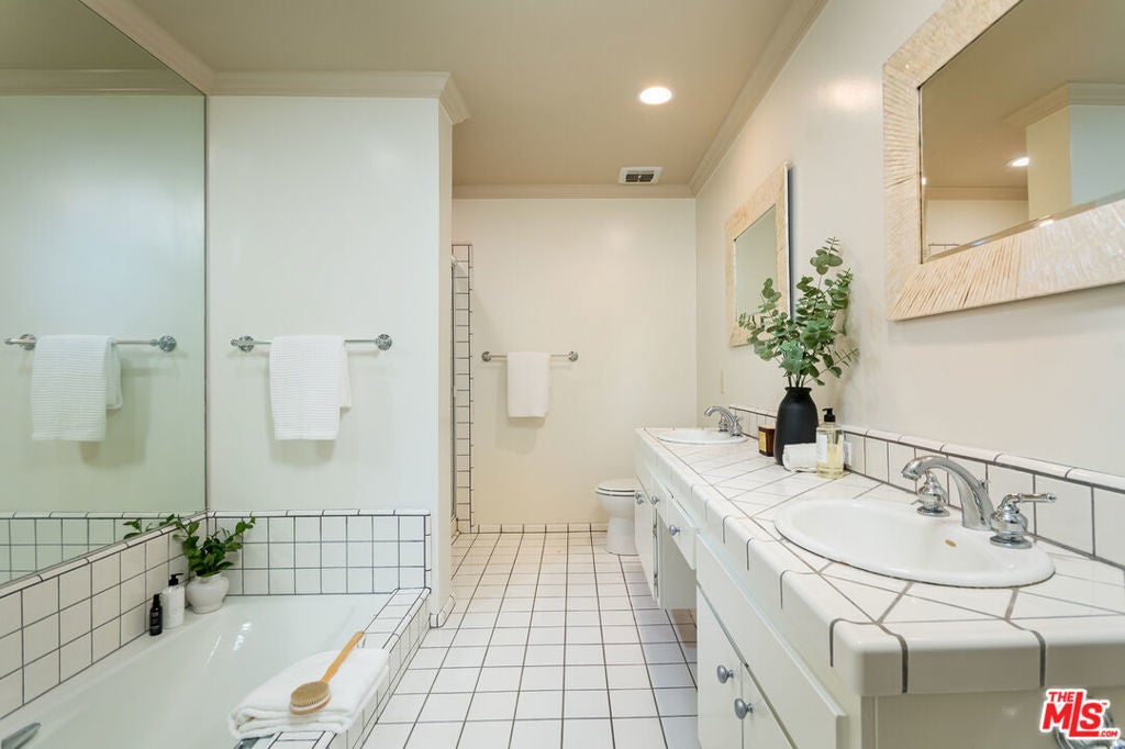 *** Check Agent remarks or call for Seller offered incentive!** Double Pane windows on both bedrooms, very quiet! Experience sophisticated living in this nearly 1,700 sq. ft. 2-bedroom, 2-bathroom sanctuary at the prestigious Fountain View, nestled in the vibrant heart of West Hollywood's coveted 90069. This front-facing corner unit, sharing only one wall, boasts stunning city views and floods of natural light, creating a bright and inviting atmosphere. The eat-in kitchen is a culinary dream, featuring gleaming granite countertops, a chic subway tile backsplash, and a brand-new stainless steel refrigerator. Flow effortlessly from the kitchen into the formal dining room, which leads to the sunken, expansive living room, complete with a cozy gas fireplace and plumbing ready for a wet bar, perfect for entertaining or unwinding in style. The oversized primary suite is a true retreat, offering an impressive walk-in closet, an additional wall of closets, and a spa-like en suite bathroom with a double vanity, a separate shower, and a luxurious soaking tub. The spacious second bedroom also features it's own walk-in closet, ensuring ample storage throughout. Elegant hardwood floors grace the main living areas, while plush new carpeting adds comfort to the bedrooms. High ceilings, crown molding, recessed lighting, plantation shutters, and side-by-side in-unit laundry further elevate the home's convenience and charm. Fountain View's resort-style amenities are unparalleled: bask by the sparkling pool, soak in one of two spas (including a covered option for year-round enjoyment), work out in the fully equipped fitness area, or enjoy friendly competition in the game room with billiards. Residents also benefit from a meeting room, guest parking, two deeded side-by-side parking spaces, and a generous private storage unit. In addition to all of the amenities, the HOA includes EQ insurance, water/trash and sewer. Located just steps from the famed Sunset Strip, you'll find yourself moments away from world-class dining at hotspots like the One Hotel and Sunset Tower Hotel, trendy eateries like Salty Girl, luxury shopping, and premier fitness centers like Equinox. This is your chance to embrace an elevated lifestyle in one of Los Angeles' most sought-after neighborhoods.