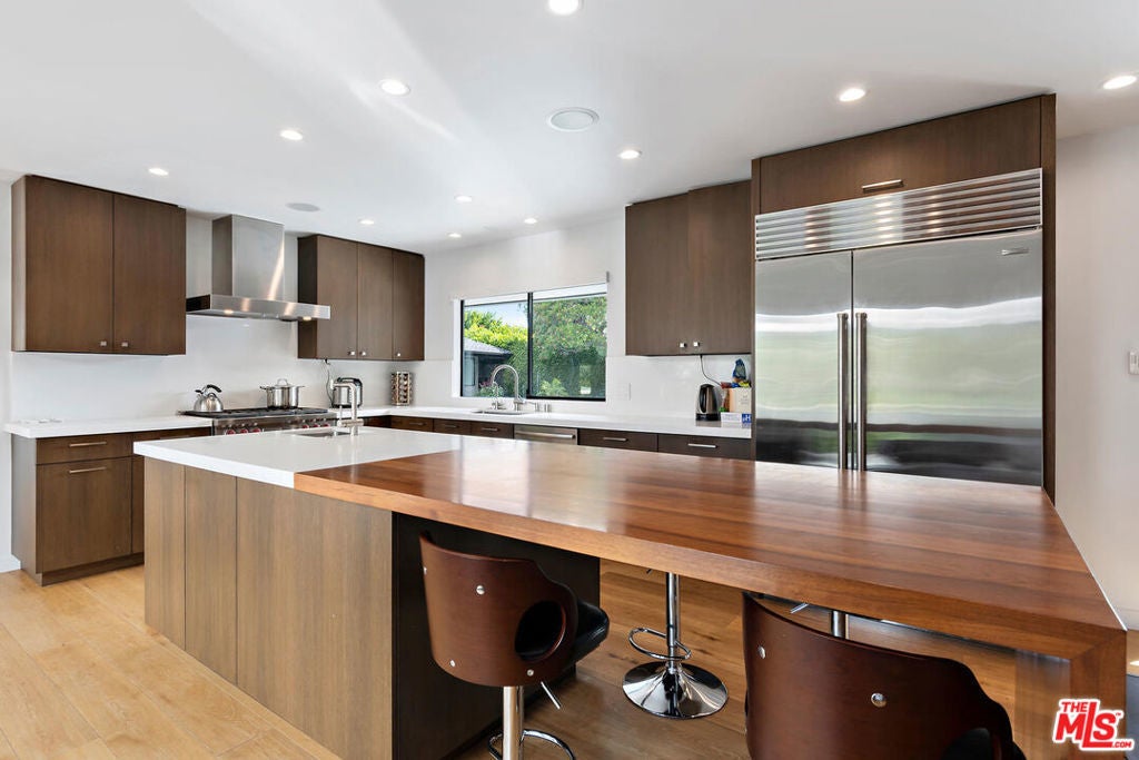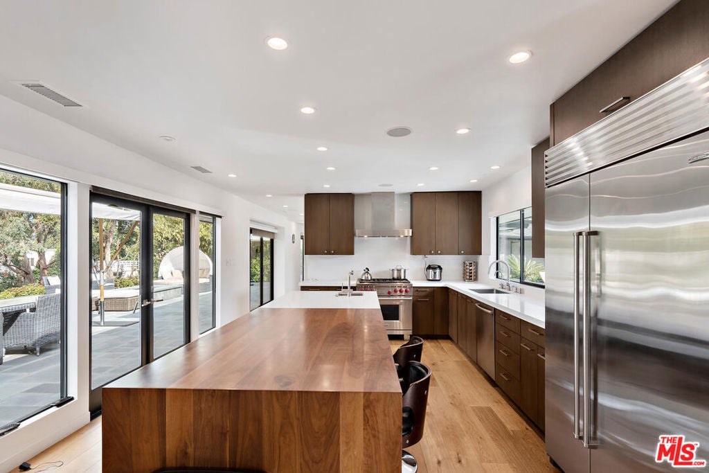 Set on an expansive 0.7-acre lot at the end of a private, quiet cul-de-sac, this beautifully renovated classic mid-century home is surrounded by mature landscaping, birdsong, and lush greenery, creating a serene retreat in the heart of the city. Behind gates and tall hedges, the property offers 4 bedrooms and 3 bathrooms, including a tranquil primary suite with fireplace, walk-in closet, and a spa-like bathroom with a shower that opens to the sky.Thoughtfully updated for modern living, the home features a media room, office, formal living and dining rooms, and a generous cook's kitchen with separate laundry room. French doors throughout create effortless indoor/outdoor flow to the flat yard, where an oversized swimmer's pool, expansive patios, and manicured lawns provide the perfect setting for entertaining or unwinding in total privacy. A large motor court and garage complete this immaculate, move-in-ready property, ideal for your most discerning client