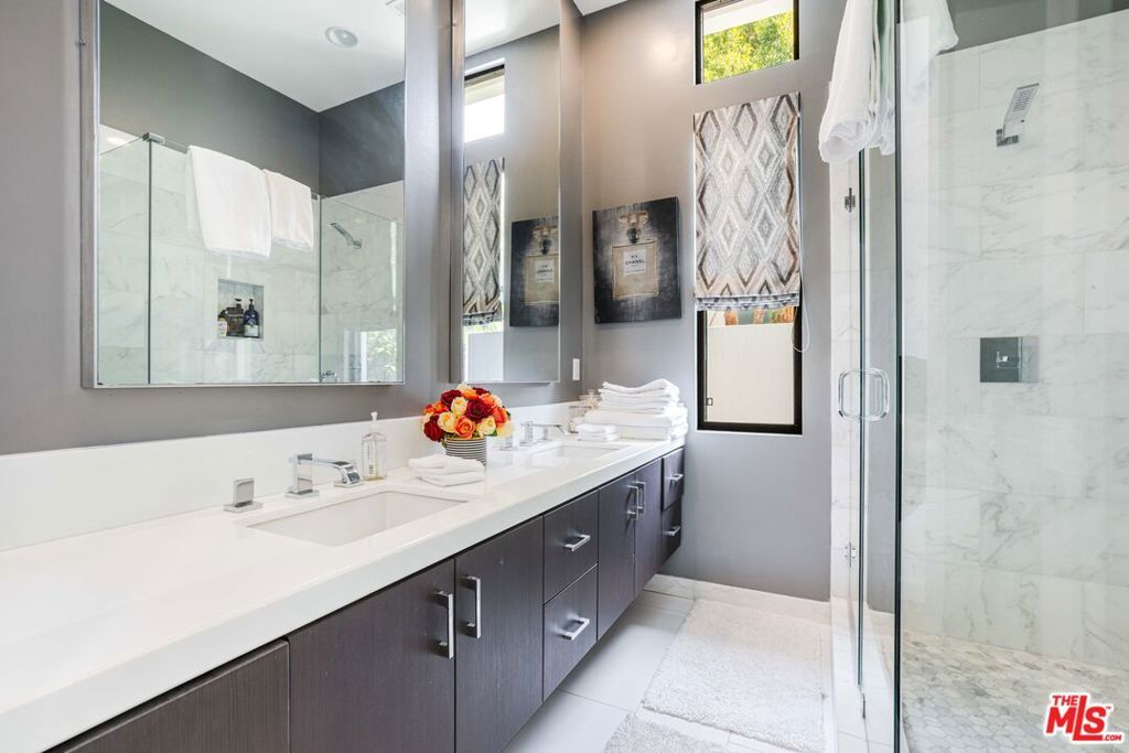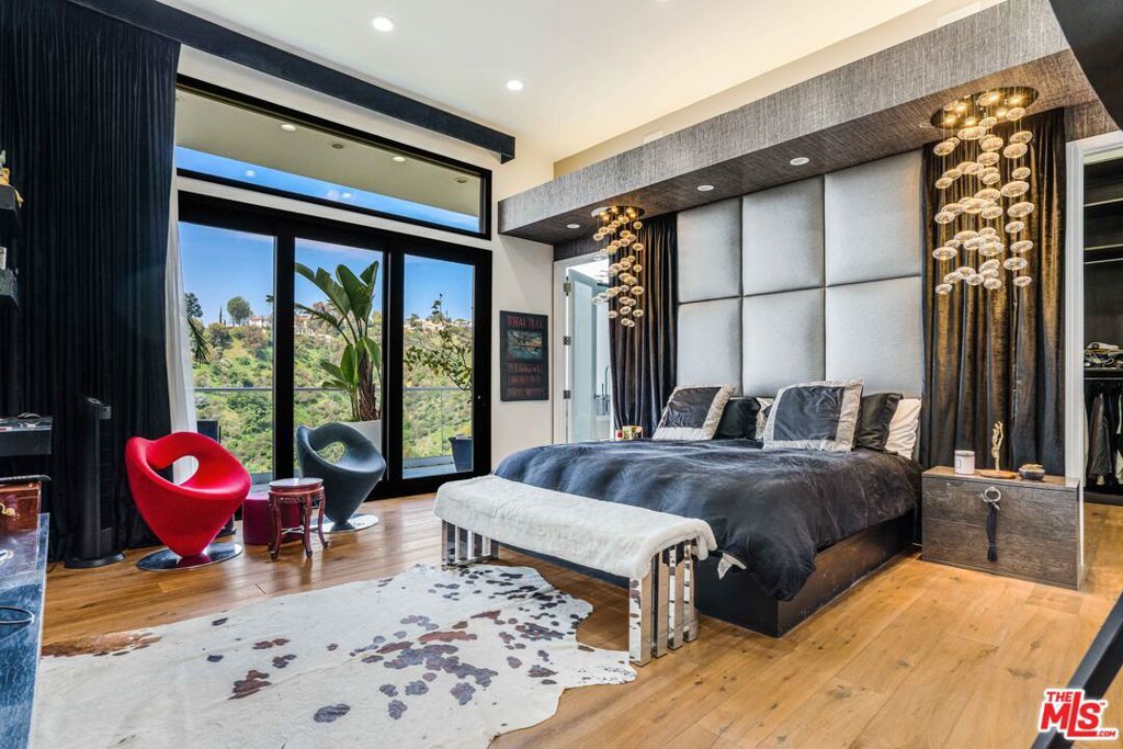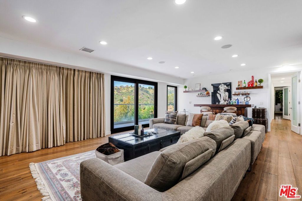 Striking architectural masterpiece boasting panoramic city, canyon, and ocean views. Designed for exceptional entertaining, the home features a modern open layout with expansive living and dining areas, soaring 12-foot ceilings, a dramatic fireplace, and wide-plank French oak floors throughout. Floor-to-ceiling glass doors and windows flood the space with natural light and showcase stunning views from every room.The luxurious primary suite includes a spa-inspired bath with exquisite finishes and a custom walk-in closet. Three additional en-suite bedrooms and a separate powder room offer comfort and privacy for guests. A spacious media/theater room is outfitted with state-of-the-art surround sound for an immersive experience.The sleek chef's kitchen features top-of-the-line Thermador appliances, custom cabinetry, and elegant glass countertops. Multiple terraces, a rooftop deck, and a built-in firepit create ideal spaces for outdoor living and entertaining.Beautifully landscaped with a dramatic courtyard entry, the home is gated and private, equipped with a full security system and surveillance cameras. A large finished basement includes a wine cellar or potential artist's studio, with room to add a pool. Adjacent property 1442 Claridge (two APN's) is included in this purchase price. (If both APN's are purchased this property would be a street to street lot.)