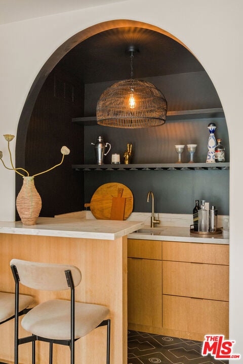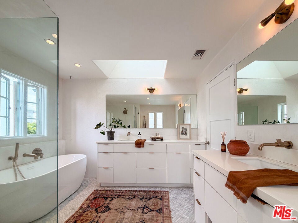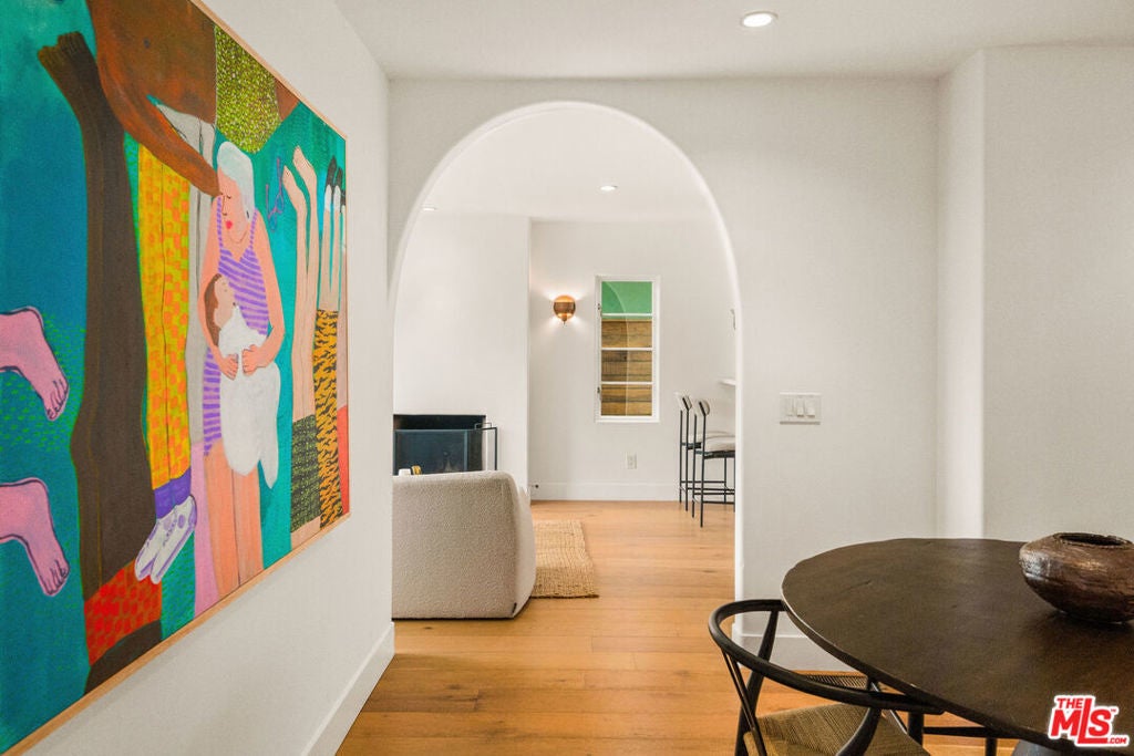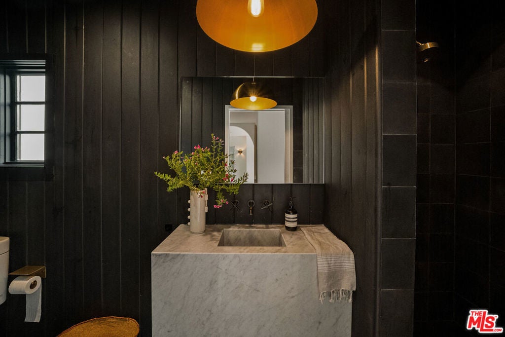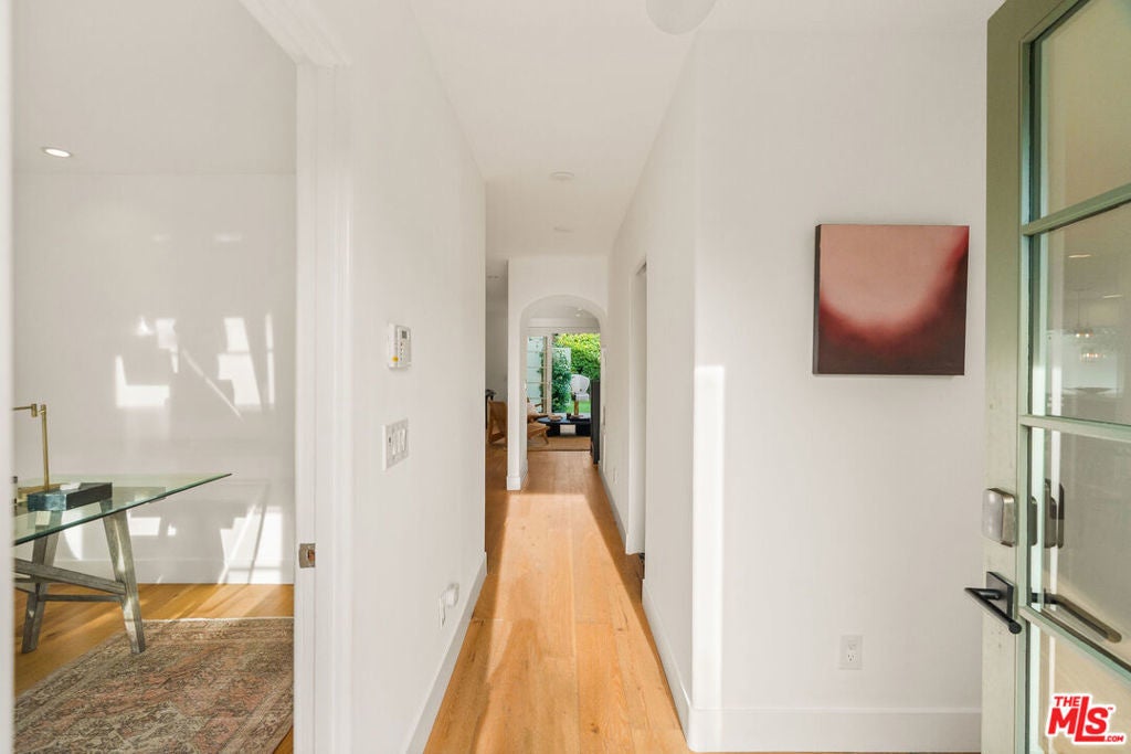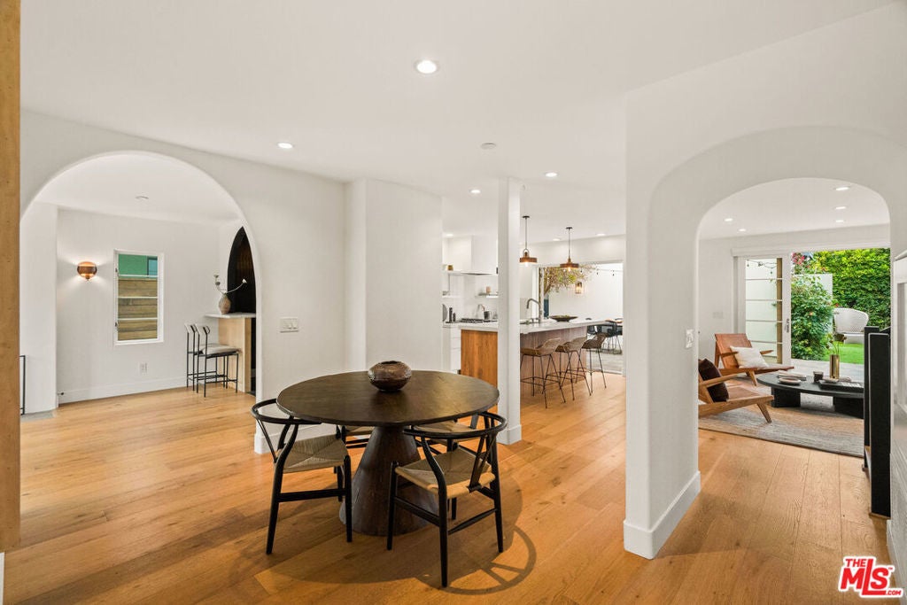 Welcome to your very own sanctuary, where privacy, warmth, and effortless coastal living come together. Beyond the statement wood doors, an intimate entry courtyard framed by mature olive trees instantly sets a vacation-at-home tone. Inside, the home opens into bright, airy living spaces designed for real life and easy entertaining: a welcoming living room, a true dinner-party dining area with its own built-in bar, and a thoughtfully updated kitchen that makes everyday cooking feel elevated. Wide-plank oak floors and organic, natural textures add a grounded elegance throughout. The main level also keeps things beautifully functional with a dedicated office and a full bathroom, ideal for work-from-home days and hosting with ease. Upstairs, the primary suite is a serene retreat with an en-suite bath and dual walk-in closets, alongside two additional bedrooms and another full bathroom, creating the perfect balance of togetherness and separation. French doors off of the kitchen and living room open to the generous backyard, which is made for the way you want to live in California: al fresco dinners, weekend lounging, kids and pets at play, and seamless indoor-outdoor flow. And then there's the cherry on top: a full, private one-bedroom guest house perched above the detached two-car garage. Completely self-contained, it feels like an "extra home within a home" and delivers the kind of flexibility buyers rarely find. Host friends and family in total comfort and privacy, create the ideal nanny or au pair setup, enjoy multigenerational living with real independence, or carve out the perfect creative studio or work-from-home haven. It's a standout feature that adds serious lifestyle value and makes this property truly unforgettable. All of it is set on a quiet street, just moments from the sand and surf in Venice and Santa Monica, the marina, and miles of bike paths. Spend your mornings at the beach, your afternoons on Abbot Kinney, and your evenings enjoying the area's best dining, wine bars, and boutiques. Beautifully finished, exceptionally private, and move-in ready, this is modern coastal living at its best.