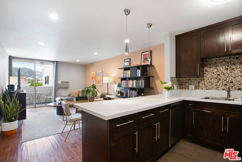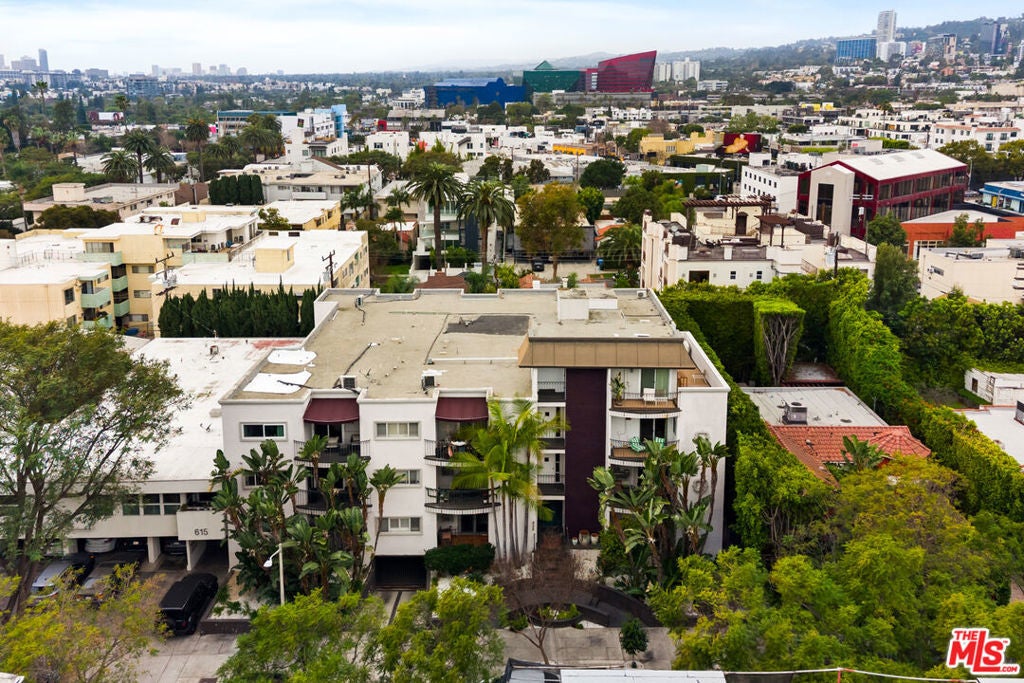 Welcome to your chic top-floor WeHo hideaway. Perched above it all, in one of the most walkable neighborhoods, this updated residence offers effortless living just moments from Melrose Place and the best of WeHo. Bathed in natural light, this Pied-a-Terre features thoughtful updates, curated and smart space design and sweeping views of the Hollywood Hills that elevate everyday living. The layout lives larger than its footprint, with an airy flow and a sense of privacy only a top-floor position can provide. Warm and inviting space with recessed lighting and hardwood floors. A bright private outdoor patio with views of the hills extends your living space outdoors effortlessly and begs for lazy Sundays with coffee on the deck. Updated kitchen with large island and breakfast bar. Chic updated bath and closets galore allow efficiency and utilizing all of its space. A roomy bedroom with sisal flooring and custom wallpaper tempts you to simply stay in and be cozy. Low HOAs and the recently updated building adds further appeal, while the location places you steps from world-class shopping, dining, and coffee in the heart of prime WeHo and the pinnacle of pedestrian lifestyle. A rare opportunity to own a refined retreat in one of Los Angeles' most iconic neighborhoods including Melrose Place, Alfred Coffee, Craig's, Catch, Melrose Design District. Get ready, all the best nights out will start here...