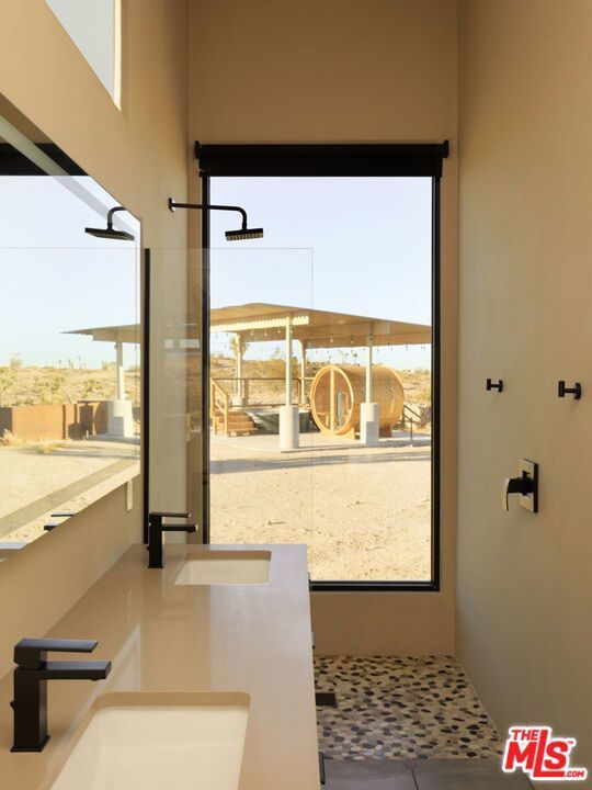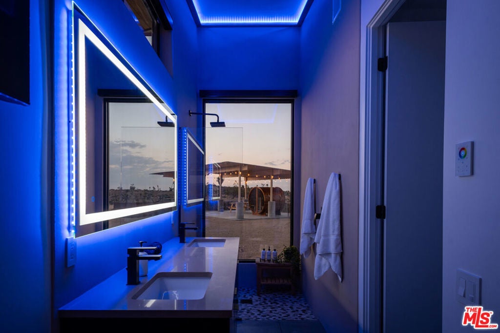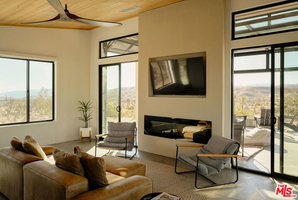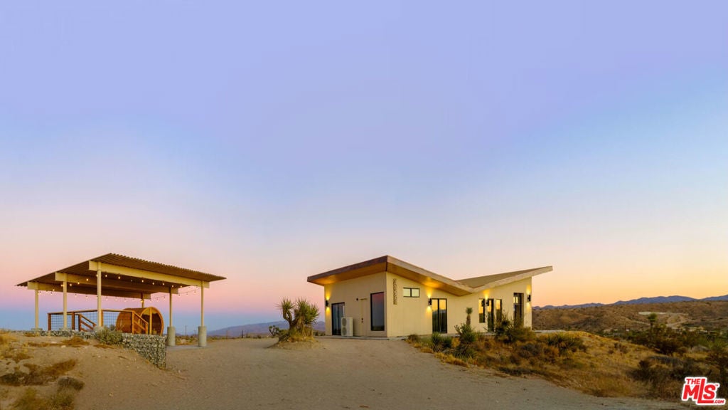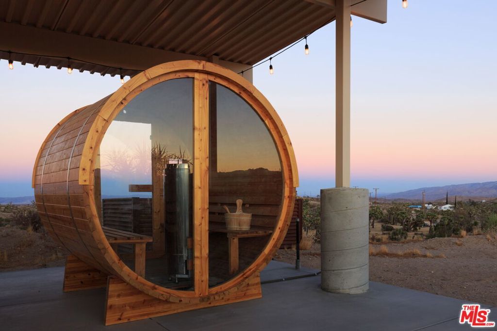 Perched on a private hilltop with sweeping 360-degree views, The Foundry is one of the top-performing vacation rentals in the High Desert, grossing approximately $165,000 annually and ranking in the top 5% of Airbnbs in Joshua Tree. This proven track record makes it a standout opportunity for investors seeking reliable returns, with the added option of continued professional management for true turn-key ease. Designed by renowned local developer Building Joshua Tree, the newly built residence merges timeless mid-century architecture with the rugged elegance of its surroundings. Expansive glass walls and soaring ceilings flood the interiors with natural light, while a chef's kitchen with Cafe appliances, two serene bedrooms, and spa-inspired bathrooms balance style with comfort. A retractable-glass sunroom opens to wellness amenities including a cedar hot tub, barrel sauna, and cold plunge that elevate both guest satisfaction and repeat bookings. At the same time, The Foundry offers more than just investment potential. Perfect as a refined second home or an escape from the city, its seamless indoor-outdoor living and tranquil desert setting create a lifestyle rooted in peace, privacy, and connection to nature. Whether enjoyed as a personal retreat or leveraged as a high-performing rental, this desert home delivers on both lifestyle and legacy.