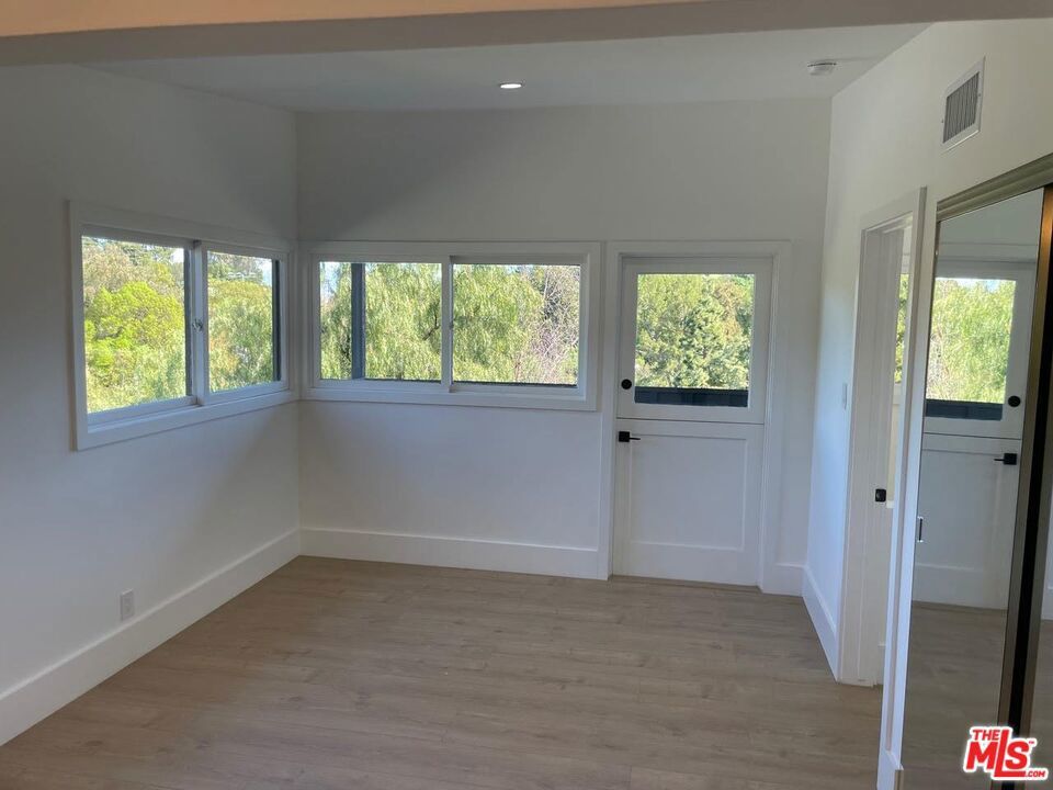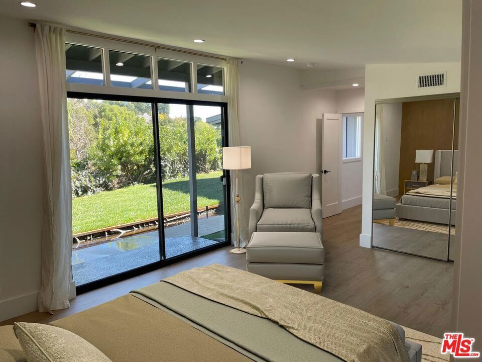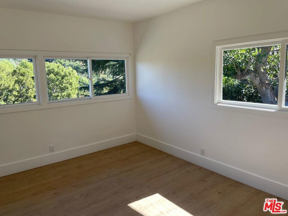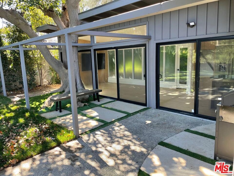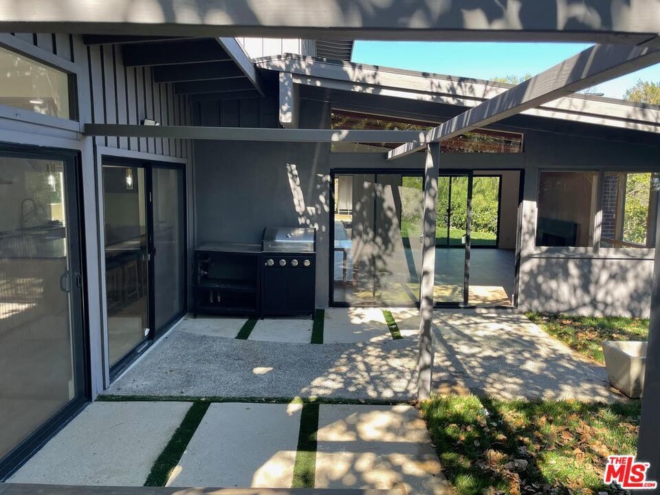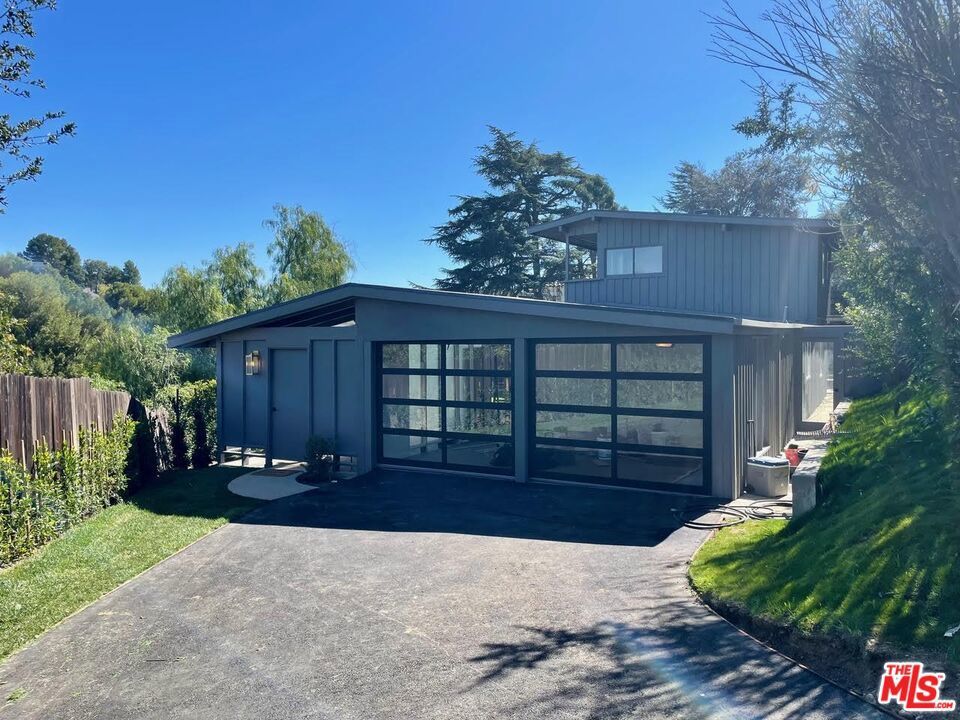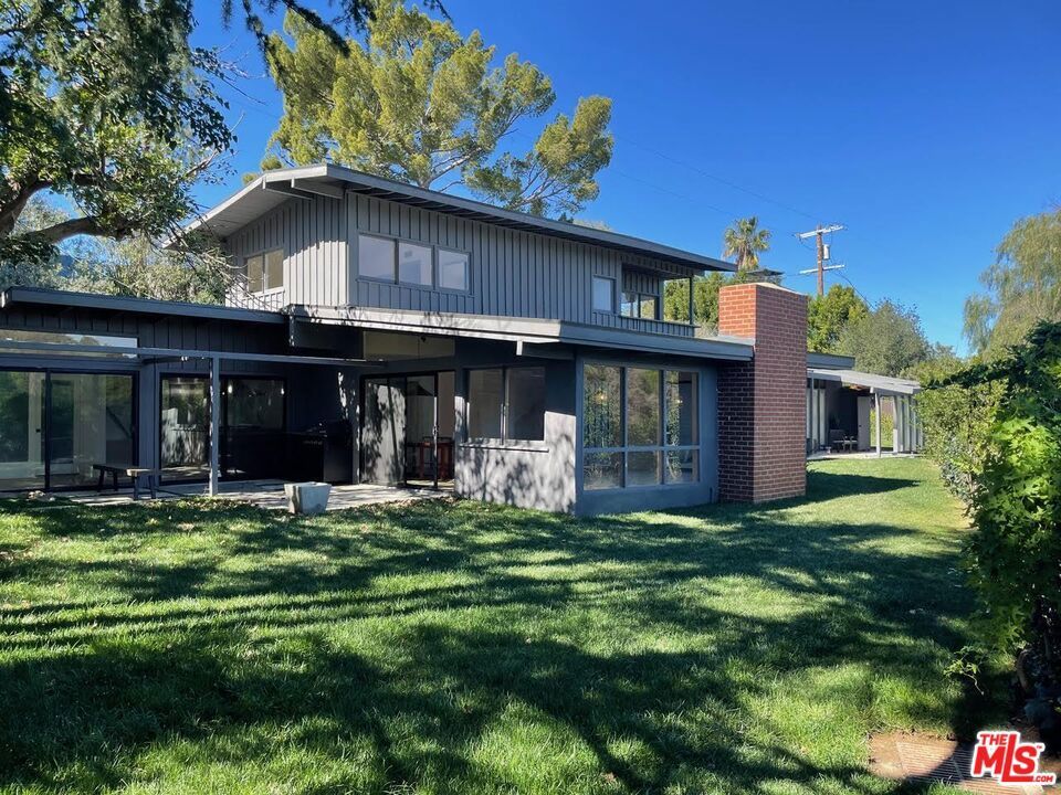 Mid century Gated 4 bedroom 4 bath, fully renovated home on a very private street off of Mulholland. Lots of light and beautiful canyon views from almost every room in this home. Private and serene with Zen court yard with pond. Large grassy yard with BBQ area. Open floor plan includes living room, dining room, and gourmet kitchen. Studio garage. Also for sale.