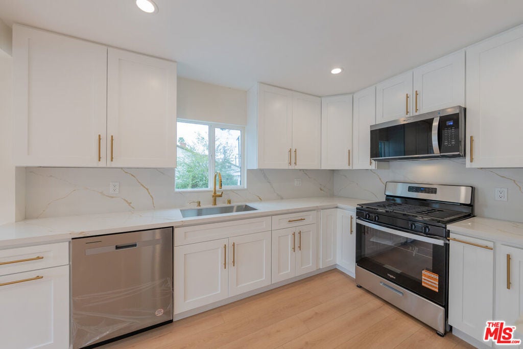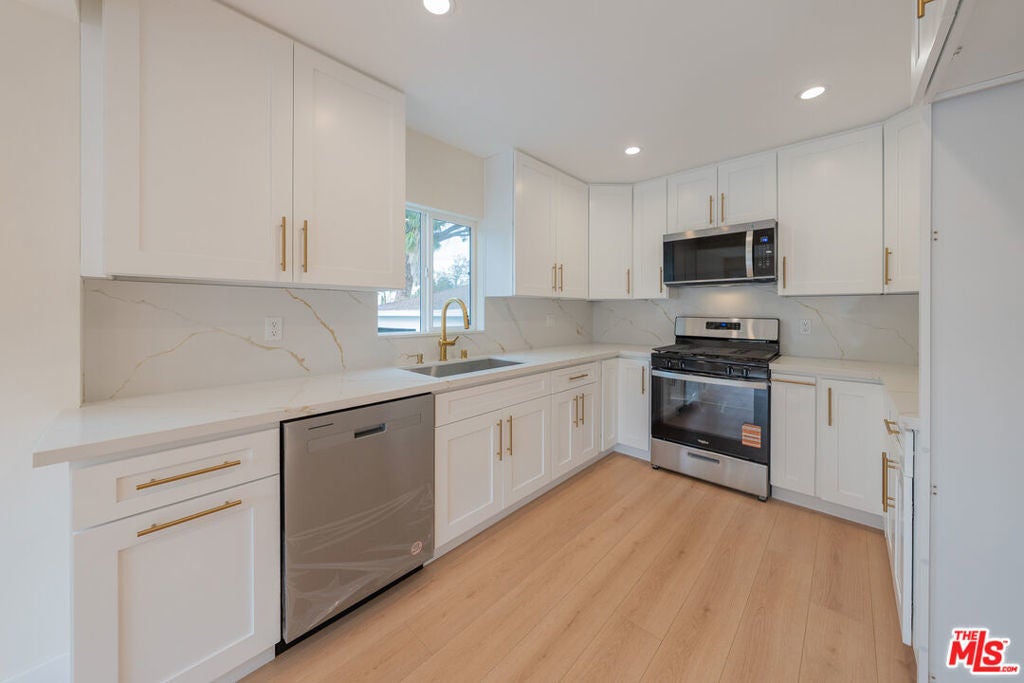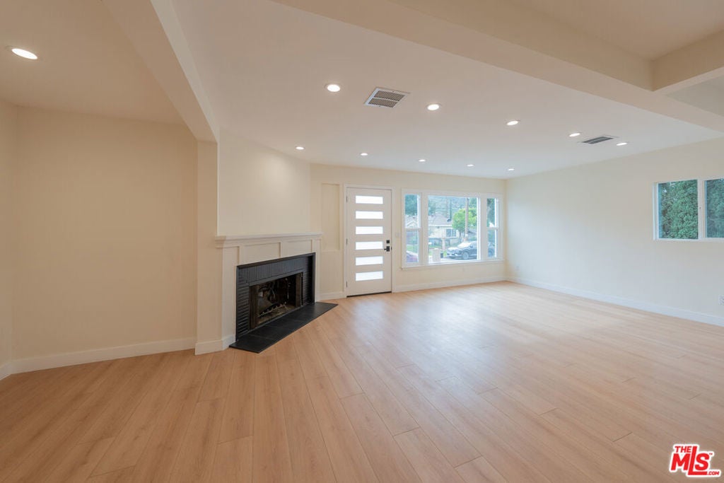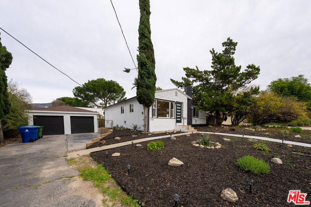 Welcome to this stunning, newly remodeled mid-century gem nestled on a nice street in the heart of Tujunga. This beautifully updated 3-bedroom, 2-bathroom residence seamlessly blends original charm with sleek, modern luxury. Step inside to discover a bright, open-concept living space accented by brand-new flooring and recessed lighting that flows effortlessly into a contemporary chef's kitchen. Here, quartz countertops, custom functional cabinetry, and elegant brass hardware create a sophisticated culinary environment. The bathrooms have been tastefully reimagined with designer tile work, frameless glass showers, and premium finishes that offer great retreat. Situated on a generous 5,992 sq. ft. lot, the property features a large private backyard with mature landscaping and breathtaking mountain views perfect for entertaining or relaxing. A long driveway leads to a detached, oversized 2-car garage, use it as a workshop, or studio. Conveniently located near hiking trails, parks, shops, this turnkey home offers the perfect combination of style, comfort, and opportunity.