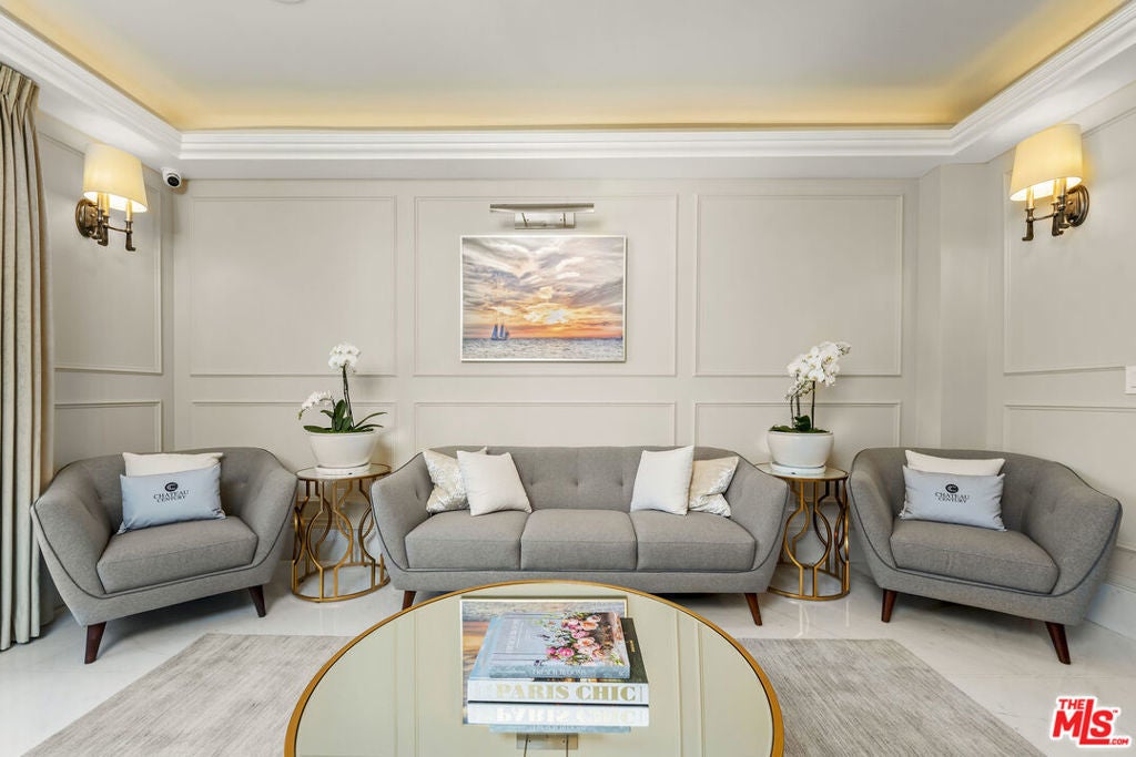 Experience a lifestyle of rich elegance and indisputable French-inspired luxury at the Chateau Century, a freshly completed, one-of-a-kind residence replete with numerous amenities and social offerings. Floor plans are vast, and multiple oversized private balconies abound from nearly every room. Fine finishes found throughout the building include architectural stonework, hand-arched ornamental wrought-iron railings, coffered ceilings, recessed lighting, Versailles travertine and wide-plank French oak floors, and more. Guests are dazzled by Carrara marble in the impressive two-story lobby with artisanal millwork and curated, plush furnishings. A collection of amenities abound, with both tranquility and entertainment lounges, proper boardroom, fitness center, hydrotherapy pool/spa, outdoor chef's kitchen, and 24/7-attended lobby. Lounge and dine al-fresco amidst lush plantings and a soothing 25-foot infinity water feature. Other unique, modern amenities include a dedicated resident ambassador, Amazon lockers, private oversized storage facilities, and even a bicycle room with repair station for the avid cyclist. Enjoy panoramic views of Century City, Beverly Hills, and DTLA under blue California skies, located within moments to all this world-famous area provides. A new life promising supreme refinement and endless leisure has arrived. Welcome! Photos are of a different unit with an identical floor plan.