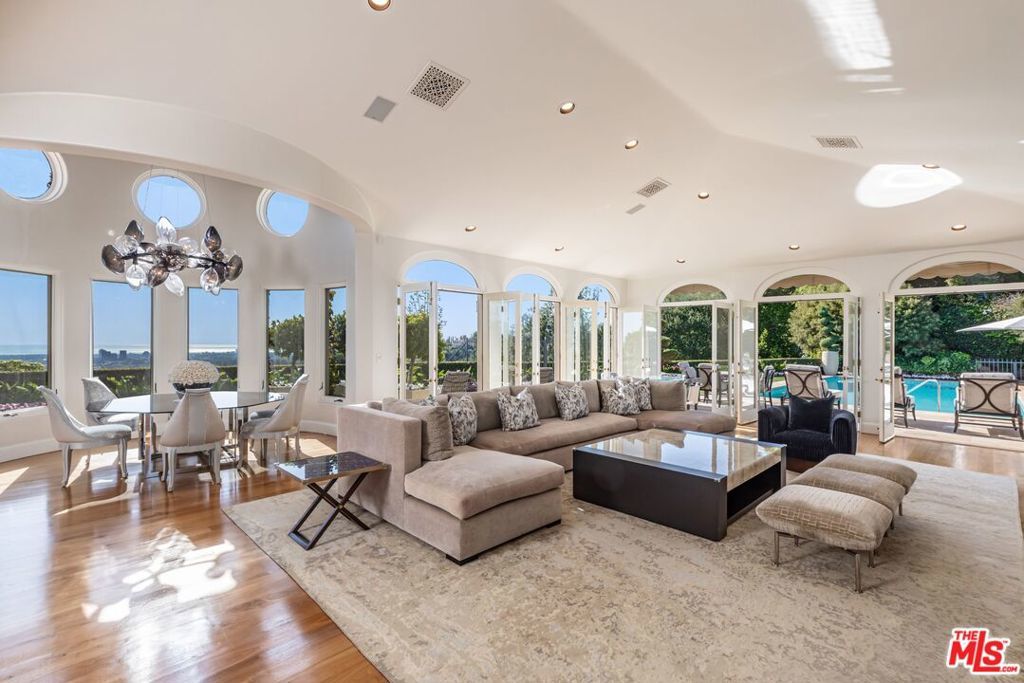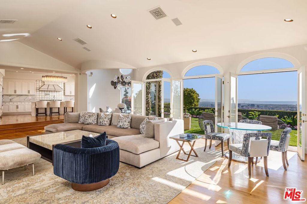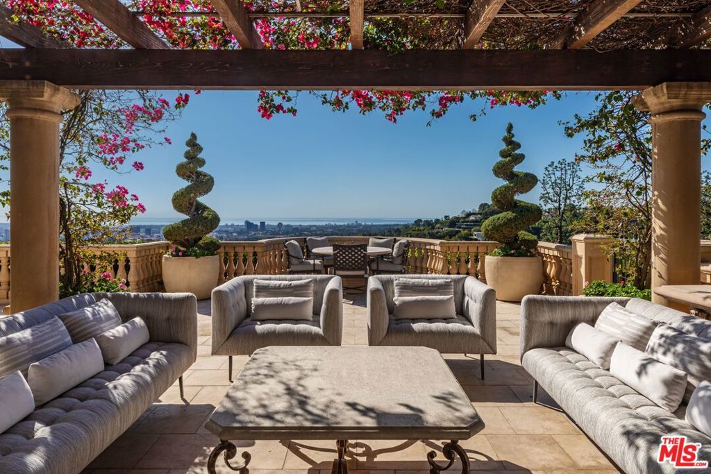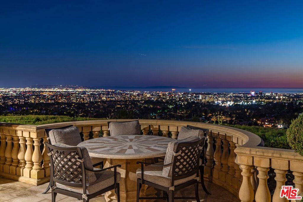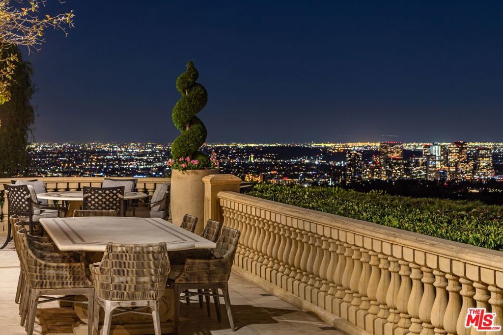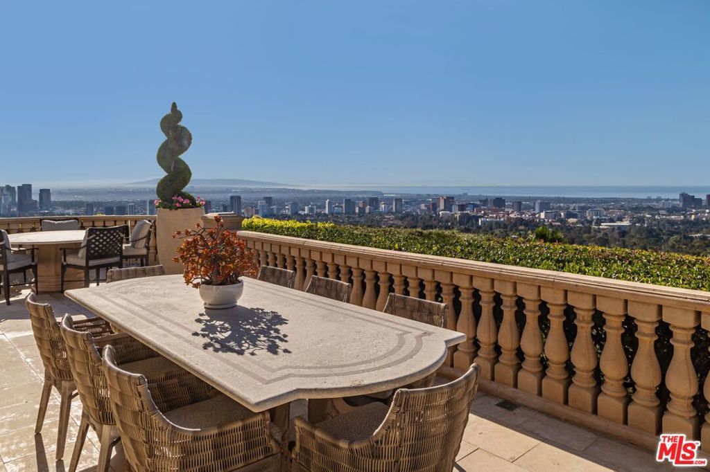 The number one best iconic 2.2-acre view property in the city that has it all. In the heart of Beverly Hills, just minutes from the legendary Beverly Hills Hotel, 1309 Davies Way delivers total privacy, panoramic city views, and a level of refinement reserved for the truly exceptional. Set on its own private promontory and located adjacent to the Pritzker, Murdoch, and future Gates family estates, this Modern Tuscan masterpiece is steeped in rare Hollywood legacy. Once home to Ricky Martin for many years, previously owned by English actor Michael Caine, and before that held by Doris Day's family, the estate carries an iconic lineage that mirrors its stature. Behind gates, a long, curving, tree-lined drive builds cinematic anticipation before opening to a grand motor court. Recently reimagined through a multi-year renovation, the residence blends timeless Mediterranean romance with modern precision, offering a living experience that feels both classic and commanding. Inside, walls of glass frame explosive head-on city and coastal views stretching across the city to the Pacific. Nearly every primary room, terrace, and outdoor retreat is oriented to the horizon, creating a constant dialogue between architecture and landscape. By day, the home is flooded with light; by night, it hovers above a constellation of city lights. The grounds unfold like a private resort: expansive lawns, manicured gardens, orchard, guest house, and a championship tennis court with pavilion, all designed for grand-scale entertaining and effortless SoCal living. The great room and chef's kitchen open directly to the outdoors, while a private theater and spa-level amenities complete the experience. The primary suite is a sanctuary in the sky, featuring its own terrace, sitting room, dual baths and dressing rooms, and flexible spaces tailored to a world-class lifestyle. Private, gated, and irreplaceable in location, history, and view, 1309 Davies Way is not just a residence, it's a legacy estate reserved for the few.