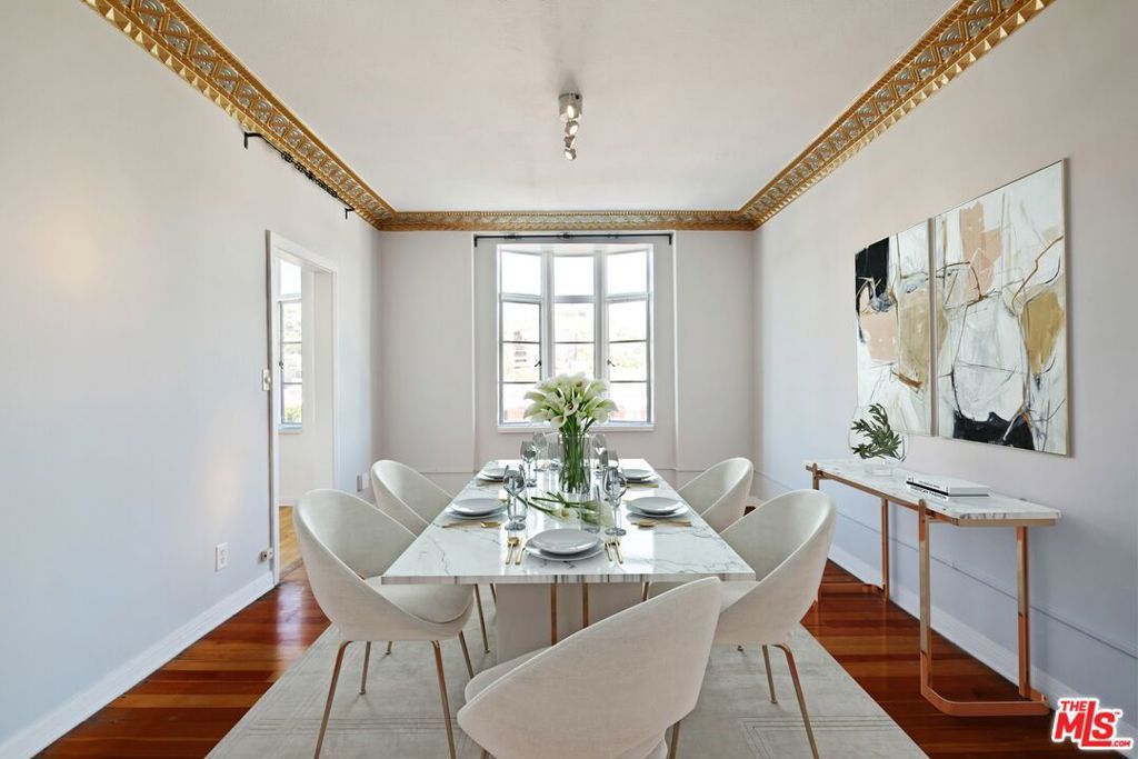 Hayworth Towers, built in 1931, is a fine example of old Hollywood Art Deco Living in the heart of West Hollywood. Restored and Historic, this building features original detail not found in properties of today. This beautiful spacious 4th floor apartment with a formal foyer has incredible south east light. The apartment has 1 Bed + 1 Bath - 1,000 + SqFt and great closet space with 9ft ceilings throughout. The very large and spacious living room is full of windows on three sides views looking South and East. The hardwood floors are carried throughout along with a formal dining room, all on a tranquil tree-lined street. All utilities are PAID except for internet/cable. 2nd floor accesses a huge community terrace and sundeck. A separate special gated dog run for your 4 legged friends. In a registered historic Art Deco 7 story high rise building in the Center City neighborhood of West Hollywood with a short distance to all restaurants.