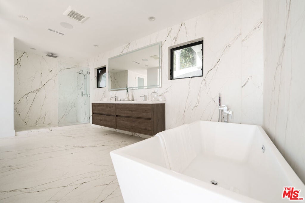 *Available long or short term, prices vary based on duration & availability.* This home is a spacious three-story view estate, perfectly located on upper Hollywood Blvd, above the famed sunset strip - offering jetliner city, and ocean views. Within minutes of Laurel Canyon, Beverly Hills and Sunset Blvd, prime location makes it easy to get around. The property includes direct-entry garage. Each room offers gracious natural light, and unobstructed views. An open layout gourmet chefs kitchen accompanied by stainless steel sleek black appliances, and center kitchen island overlooking the city makes for an ultimate cooking experience. Ceiling to floor sliding doors provide an indoor/outdoor experience as outdoor terraces are present on each level. Primary suite features a fireplace, private balcony, and a luxury style master bathroom. The Master bathroom is truly unmatched with its high end finishes, as it invites you in to relax after a long day, in a king-sized soaking tub, or showers. As you make your way down to the backyard, a panoramic view of the city takes your breath away. Enjoy the skylight sunset, with a built in fireplace & BBQ, perfect for hosting dinner parties or a romantic night in the jacuzzi. Smart-Home features include fully equipped lighting systems, Nest, Sonos, Multi-Zoned & control 4 applications. Welcome Home.