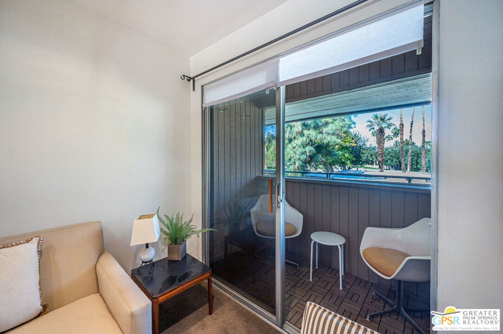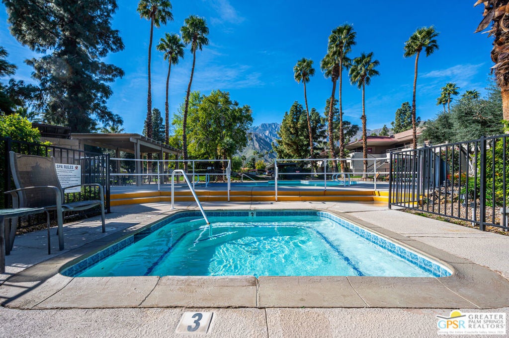 Welcome to Palm Springs Villas I! This unit has been thoughtfully, modernly updated in all the right places. The kitchen was updated with cabinetry, counter tops, appliances, tile floor and lighting. The bathroom was completely updated as well with tile floor and tile shower with glass partition, updated sink and toilet as well. Painted throughout. Beautiful mountain and tree top views from the private covered balcony. The community features covered parking, multiple swimming pools and tennis courts. Plenty of green space for dog walking.This community is located minutes from Downtown Palm Springs near the CV Link, near many mountain hiking trails, the Tram, spas, golf courses and restaurants. So much to offer just minutes away. Seller to offer $1500 flooring credit with full priced offer. Furnishings are included. Seller to review all offers.