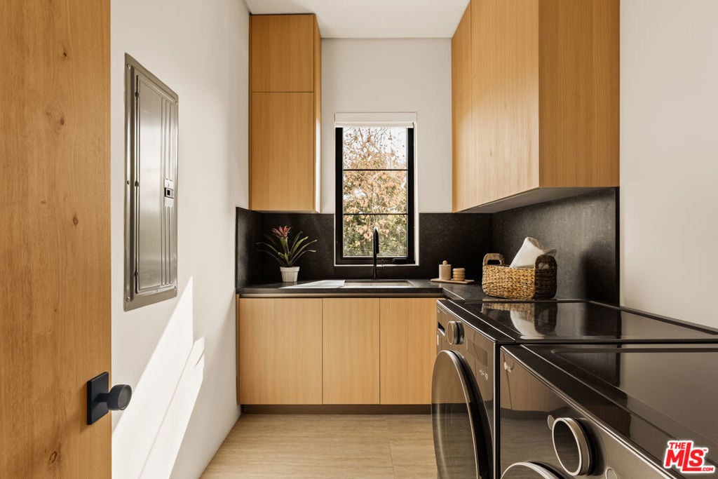 Newly built construction by MLR Development offering elevated modern living in prime Valley Village, just moments from Colfax Elementary. This 5-bedroom, 6-bath residence features soaring ceilings, an open-concept layout, and expansive glass that creates seamless indoor-outdoor flow throughout the main living spaces. Thechef's kitchen is equipped with Miele appliances, custom cabinetry, dual prep counters, and an oversized island ideal for everyday living and entertaining.The privatebackyard is a true retreat, complete with a pool, spa, outdoor kitchen, and fire pitperfect for hosting and relaxing alike. Designed with both comfort and functionality in mind,the home also includes a private home theater, an ensuite guest bedroom on the main level, and thoughtfully curated finishes throughout. Upstairs, four additional ensuitebedrooms are arranged for privacy and ease, anchored by a full laundry room.The spacious primary suite showcases vaulted ceilings, a private balcony, a spa-like bath,and an oversized custom walk-in closet. With smart-home features and a layout ideal for both entertaining and everyday living, this residence presents a rare opportunity totour a newly built home in one of Valley Village's most desirable neighborhoods.