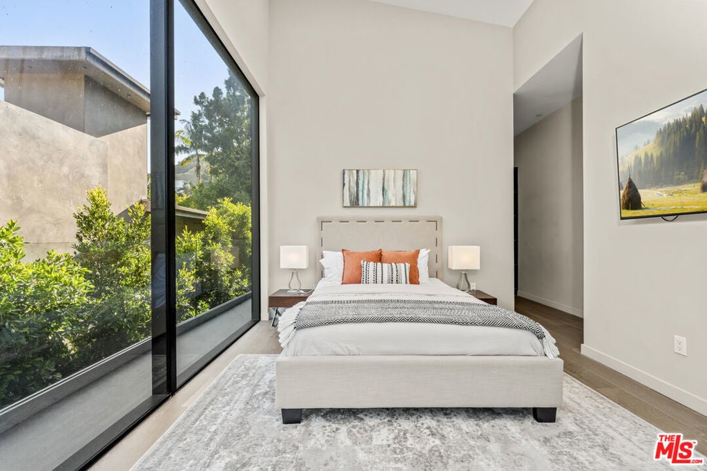 AVAILABLE MONTHLY AND QUARTERLY AT HIGHER RATE. Tucked behind lush hedging and mature palms, this striking contemporary residence rises as a private architectural retreat in one of Beverly Hills' most coveted pockets. Moments from the Beverly Hills Hotel and the Golden Triangle, the home offers the rare balance of central convenience and complete seclusion. Spanning approximately 4,500 square feet, the five bed, six bath residence was thoughtfully designed for seamless indoor outdoor living. Clean architectural lines, expansive floor to ceiling glass, and a dramatic double height stairwell create a light filled environment that feels both modern and warm. The main level unfolds through an open concept living and dining space framed by walls of glass overlooking tranquil greenery. A sleek fireplace anchors the living room, while the chef's kitchen features custom cabinetry, premium appliances, and an oversized island ideal for entertaining. Sliding doors open effortlessly to the backyard a private oasis complete with pool, lounging terrace, and grassy lawn surrounded by tall hedges for ultimate privacy. Upstairs, all bedrooms are en suite, offering comfort and discretion for family and guests alike. The primary suite is a true sanctuary, defined by soaring ceilings, oversized windows, a spa inspired bath with soaking tub and a generous walk in closet. Designed for both leisure and lifestyle, the lower level reveals a glass wine wall, custom bar, and home theater creating an ideal setting for gatherings. This property represents contemporary Beverly Hills living at its finest; private, refined, and effortlessly connected to all that Los Angeles has to offer. ******Also available for sale.