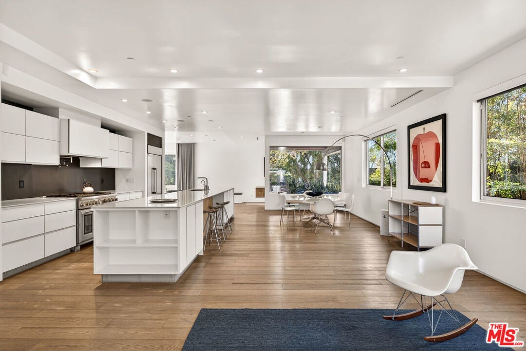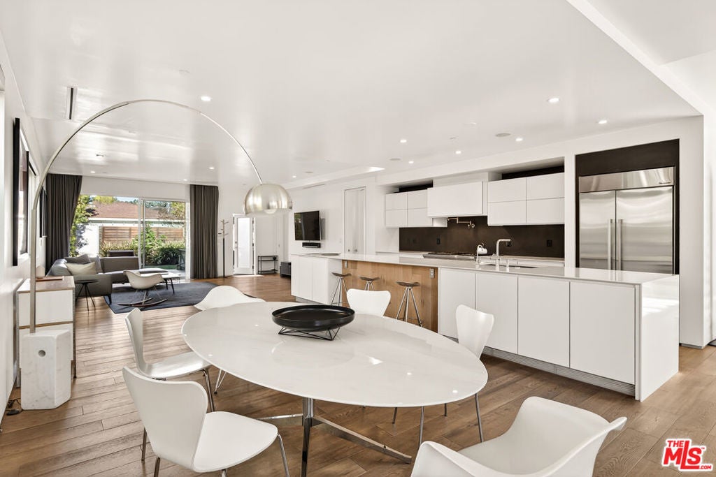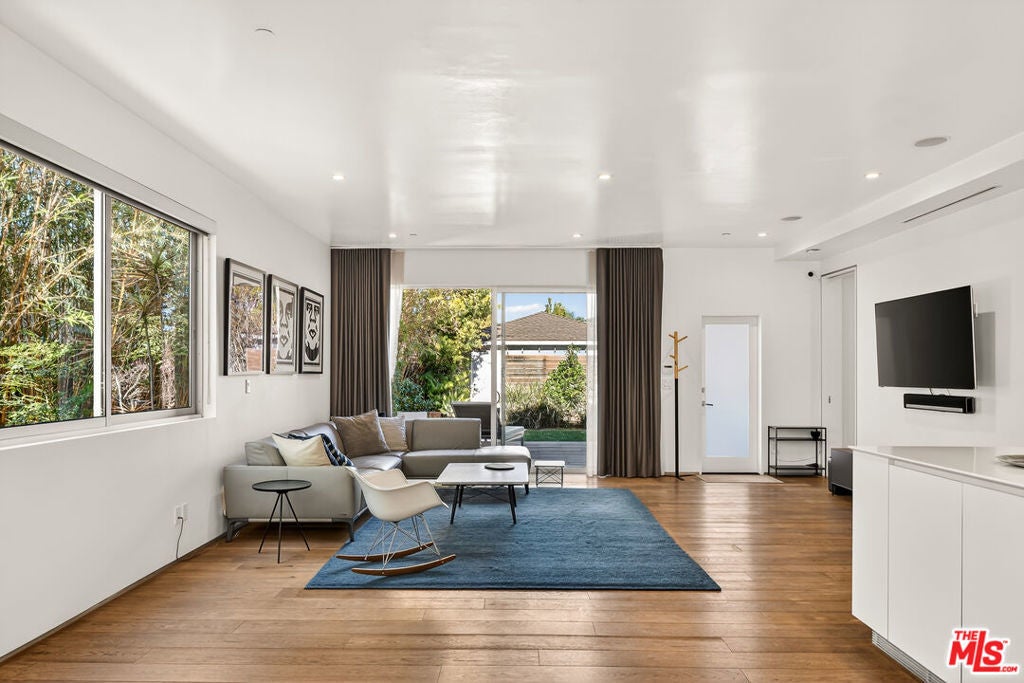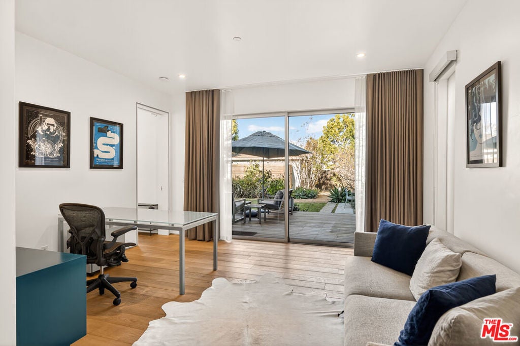 Perched on a gentle hill in the heart of Mar Vista, this 4-bedroom, 4-bathroom residence offers a rare sense of serenity just moments from the best of the Westside, providing a peaceful retreat with effortless access to Santa Monica, Venice, and Playa Vista while perfectly balancing privacy and convenience. Inside, sun-drenched open-concept living spaces are framed by beautiful white oak floors, with cork insulation upstairs for exceptional quiet. The chef's kitchen is both elegant and functional, featuring Thermador stainless steel appliances, a walk-in pantry, basalt backsplash, quartz countertops, a generous center island, and a U-Line wine fridge for your favorite vintages. Designed for both comfort and entertaining, the seamless indoor-outdoor flow opens to inviting gathering spaces and a sunset-view deck. All upstairs bedrooms feature en-suite baths, including a luxurious primary suite with a spa-inspired bathroom, soaking tub, separate shower, and dual vanity. A downstairs bedroom offers flexibility for guests or a refined home office, while an upstairs den provides the perfect reading nook or workspace. Modern conveniences include dual-zone HVAC with advanced air filtration, Wi-Fi-controlled fans, integrated ceiling speakers, tankless water heaters, a security system with cameras, and a garage with added storage. The vibrant neighborhood places beloved local favorites like Little Fatty, Rose and Abbot Kinney, and Alana's Coffee just moments away - offering an exceptional lifestyle in one of Mar Vista's most coveted enclaves.