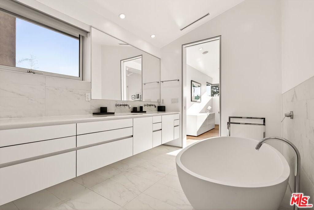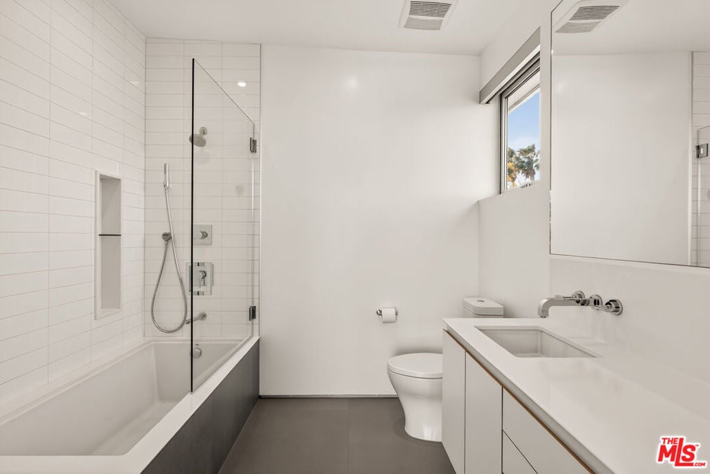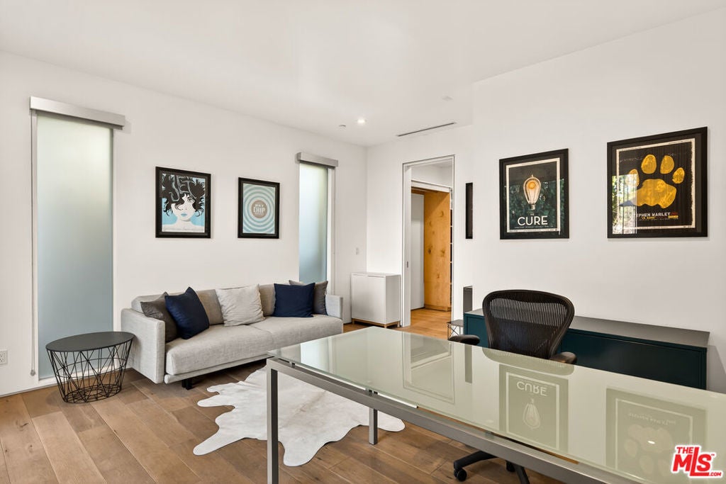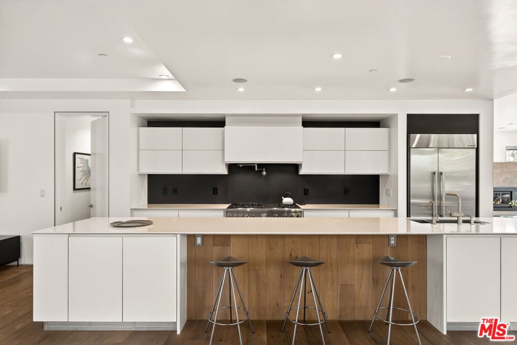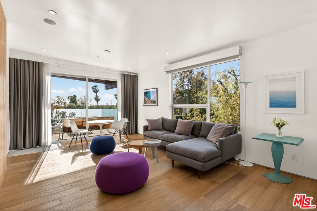 Perched on a gentle hill in the heart of Mar Vista, this 4-bedroom, 4-bathroom residence offers a rare sense of serenity just moments from the best of the Westside, providing a peaceful retreat with effortless access to Santa Monica, Venice, and Playa Vista while perfectly balancing privacy and convenience. Inside, sun-drenched open-concept living spaces are framed by beautiful white oak floors, with cork insulation upstairs for exceptional quiet. The chef's kitchen is both elegant and functional, featuring Thermador stainless steel appliances, a walk-in pantry, basalt backsplash, quartz countertops, a generous center island, and a U-Line wine fridge for your favorite vintages. Designed for both comfort and entertaining, the seamless indoor-outdoor flow opens to inviting gathering spaces and a sunset-view deck. All upstairs bedrooms feature en-suite baths, including a luxurious primary suite with a spa-inspired bathroom, soaking tub, separate shower, and dual vanity. A downstairs bedroom offers flexibility for guests or a refined home office, while an upstairs den provides the perfect reading nook or workspace. Modern conveniences include dual-zone HVAC with advanced air filtration, Wi-Fi-controlled fans, integrated ceiling speakers, tankless water heaters, a security system with cameras, and a garage with added storage. The vibrant neighborhood places beloved local favorites like Little Fatty, Rose and Abbot Kinney, and Alana's Coffee just moments away - offering an exceptional lifestyle in one of Mar Vista's most coveted enclaves.