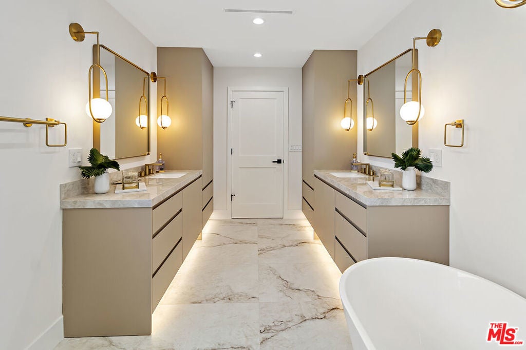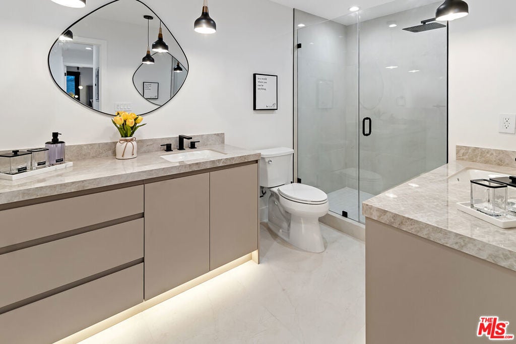 If you're searching for a peaceful and secure neighborhood to move to, look no further. This stunning newly built home is situated in the charming neighborhood of Sherman Oaks, known for its family-friendly atmosphere and beautiful tree-lined streets. The owner invested a significant amount of money in high-end finishes. The open floor plan is perfect for hosting guests, with a large living room, dining area, and a modern gourmet kitchen equipped with top-of-the-line Thermador appliances, custom cabinetry, a double sink, and a large island for meal preparation and serving. The first floor includes two guest bedrooms, a jack-and-jill bathroom, and a fancy glass wine cellar; upstairs, you'll find three generously sized bedrooms. The primary suite features a lavish bathroom with a large dual shower, double vanity, and a walk-in closet. A washer and dryer, as well as a security system, have been added for your convenience. The basement has been expanded to increase the house's total square footage. It now includes a Movie Theater, a fully equipped GYM, and a bonus room that can easily be converted into a game room. The outdoor area has a secluded backyard with a HOT TUB and a built-in BBQ, ideal for outdoor activities and relaxing evenings with family and friends. In addition, there is a 400 sqft cabana that can serve as a recreational room or an extra storage room. The home is secured and gated, ensuring safety and privacy, and features a one-car garage and gated driveway that can accommodate 4 more vehicles. It is conveniently located close to houses of worship, has some of the best dining, shopping, and entertainment options, and has major transportation routes for easy commute.