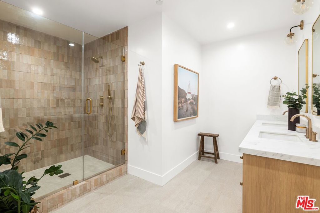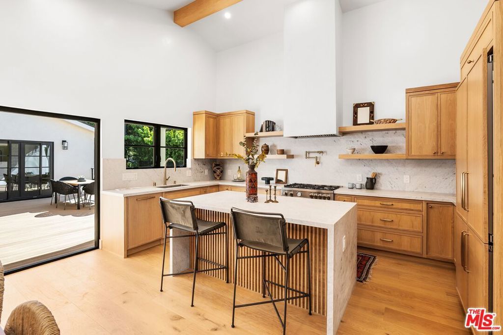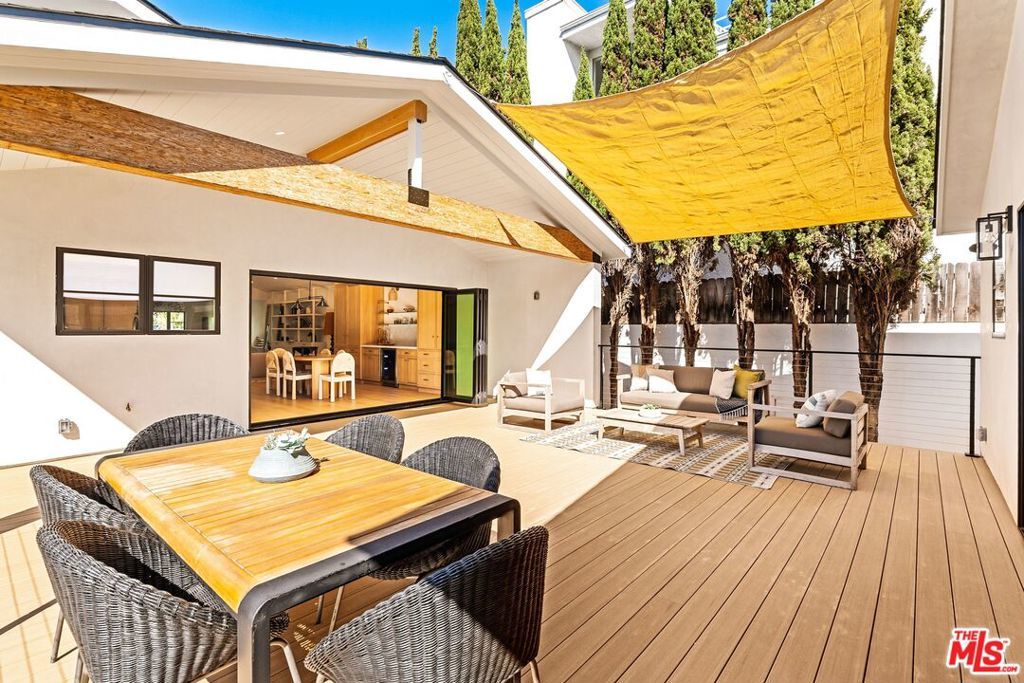 Presenting 12426 Woodgreen Ave, an exceptionally remodeled Mar Vista Hill home expertly crafted by MDI Homes and curated by Joy Margaux Design, where virtually nothing from the original structure remains. From the moment you arrive, you are greeted by striking curb appeal with a metal standing seam roof, white oak siding, and drought-tolerant landscaping with artificial turf and drip irrigation, setting the tone for the refined craftsmanship found throughout.Inside, vaulted ceilings with white oak beams, wide-plank hardwood floors, and skylights with motorized shades fill the home with natural light. The open-concept layout centers around a chef's kitchen featuring honed marble countertops with a dramatic waterfall island, custom white oak cabinetry, and seamless flow through a La Cantina folding door system to a 700 plus square foot Trex deck, perfect for indoor-outdoor living. Two smooth stucco gas fireplaces anchor the family room and primary suite, while a dedicated wine area and custom built-ins add thoughtful functionality. Milgard windows and doors and ample storage enhance both form and function. The property is fully enclosed with an automatic gated entry, offering privacy and security. Completing the offering is a detached ADU with private side gate access, ideal for guests, rental income, or a home office. A rare opportunity to own an exceptionally remodeled, design-driven home in one of Mar Vista Hill's most desirable locations.