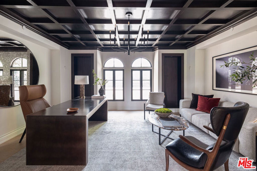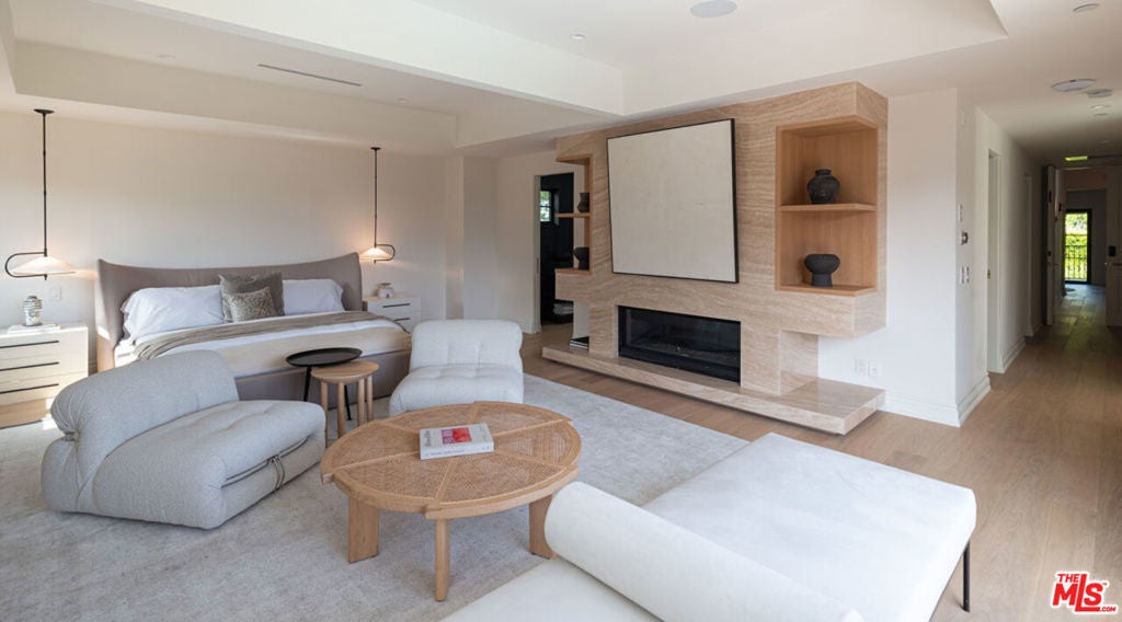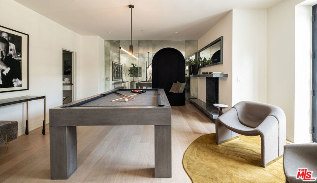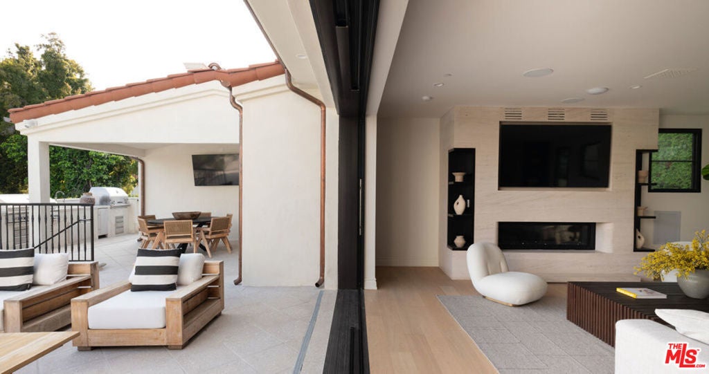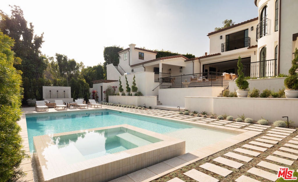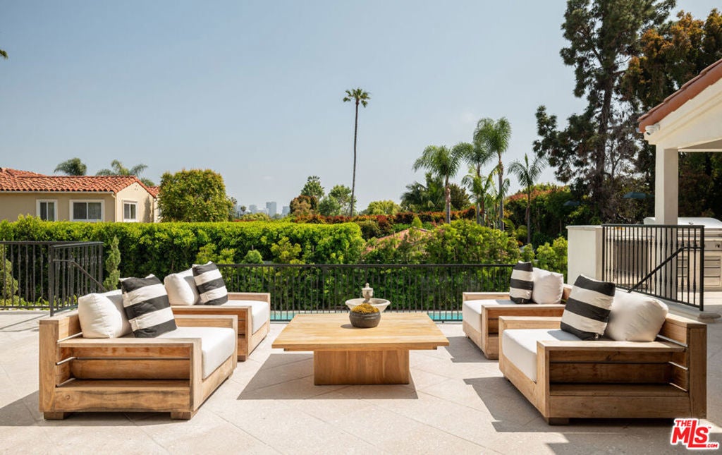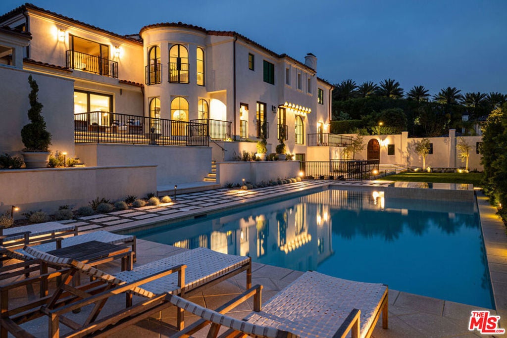 Welcome to Casa Estrella, a fully reimagined transitional Spanish estate set in one of Beverly Hills' most coveted locations. Rebuilt down to the frame, this 6-bedroom, 9-bathroom residence showcases all-new construction with the finest luxury finishes throughout. The main level offers a bright, open-concept floor plan that seamlessly connects the formal living and dining rooms, private office/library, and expansive family room. At the heart of the home, the chef's kitchen is appointed with top-of-the-line Wolf appliances, custom stone sinks, bespoke cabinetry, and a generous walk-in pantry thoughtfully designed for both everyday living and elegant entertaining. Upstairs, four ensuite bedrooms include a spectacular primary suite featuring dual spa-inspired baths, separate walk-in closets, and breathtaking city views. Designed for ultimate entertainment and wellness, the lower level boasts a state-of-the-art theater, fully equipped gym, infrared sauna, cold plunge, bar, and temperature-controlled wine cellar. The outdoor grounds are equally impressive, offering a resort-style pool and spa, outdoor kitchen, and beautifully landscaped lounge areas ideal for year-round California living. Additional amenities include a detached guesthouse, five fireplaces, a three-car garage, and a motor court accommodating up to 12 vehicles. Located just one mile from the iconic Beverly Hills Hotel and the world-class shopping and dining of Rodeo Drive, Casa Estrella represents the perfect blend of timeless architecture and modern luxury the epitome of refined Beverly Hills living.