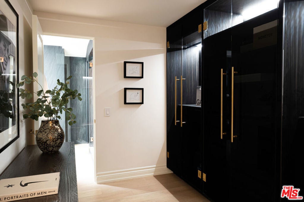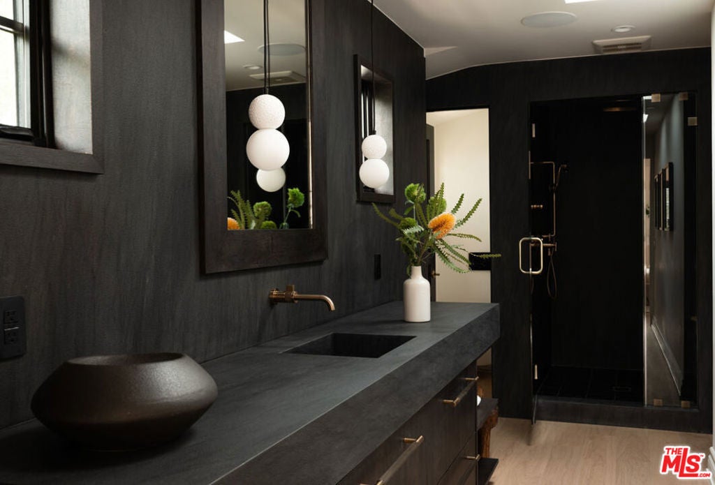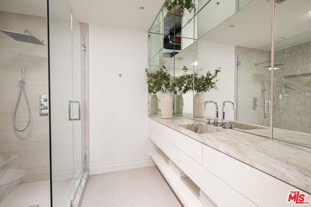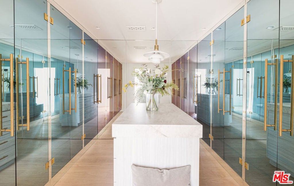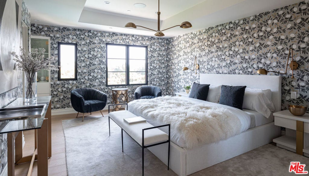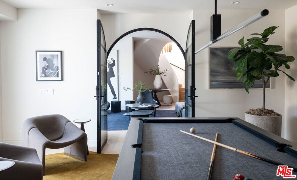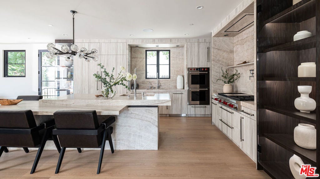 Welcome to Casa Estrella, a fully reimagined transitional Spanish estate set in one of Beverly Hills' most coveted locations. Rebuilt down to the frame, this 6-bedroom, 9-bathroom residence showcases all-new construction with the finest luxury finishes throughout. The main level offers a bright, open-concept floor plan that seamlessly connects the formal living and dining rooms, private office/library, and expansive family room. At the heart of the home, the chef's kitchen is appointed with top-of-the-line Wolf appliances, custom stone sinks, bespoke cabinetry, and a generous walk-in pantry thoughtfully designed for both everyday living and elegant entertaining. Upstairs, four ensuite bedrooms include a spectacular primary suite featuring dual spa-inspired baths, separate walk-in closets, and breathtaking city views. Designed for ultimate entertainment and wellness, the lower level boasts a state-of-the-art theater, fully equipped gym, infrared sauna, cold plunge, bar, and temperature-controlled wine cellar. The outdoor grounds are equally impressive, offering a resort-style pool and spa, outdoor kitchen, and beautifully landscaped lounge areas ideal for year-round California living. Additional amenities include a detached guesthouse, five fireplaces, a three-car garage, and a motor court accommodating up to 12 vehicles. Located just one mile from the iconic Beverly Hills Hotel and the world-class shopping and dining of Rodeo Drive, Casa Estrella represents the perfect blend of timeless architecture and modern luxury the epitome of refined Beverly Hills living.