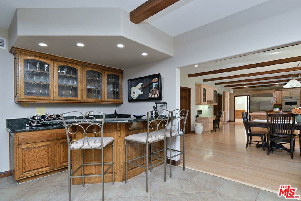 Beamed Ceilings, Breakfast Bar, Ceiling Fan(s), Cathedral Ceiling(s), Eat-in Kitchen, High Ceilings, Recessed Lighting, Bar, Wet Bar