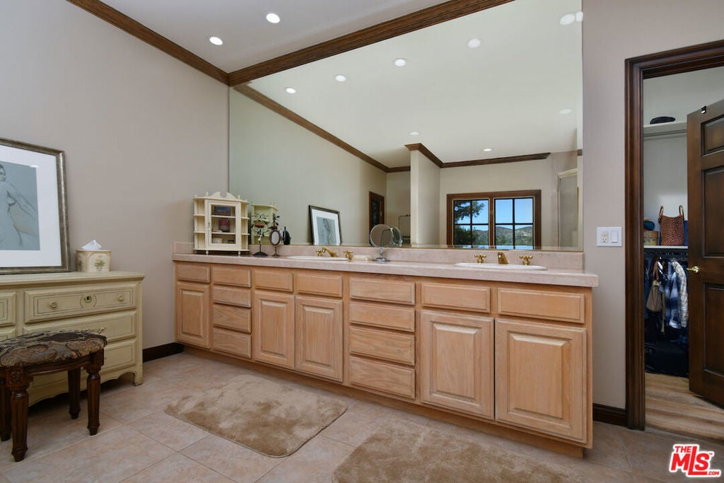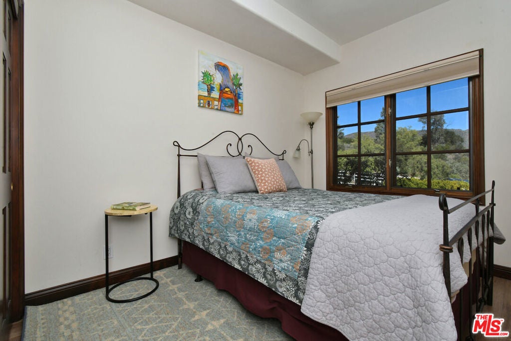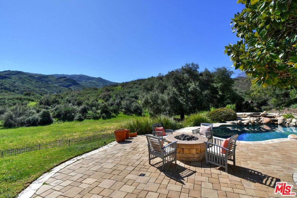 Welcome to this exceptional 5 ensuite bedrooms, 6 bath estate offering 4,796 sq ft of living space on a 59,649 sq ft lot. Surrounded by breathtaking 360-degree views of the Santa Monica Mountains, this estate property offers a rare combination of privacy, scale, and natural beauty. Approached by a tree-lined street and charming wood bridge spanning the seasonal Sierra Creek, the home makes a memorable first impression. Inside, soaring wood-beamed ceilings, recessed lighting and an inviting atmosphere, while French doors connect the main living areas to the surrounding outdoor landscape. The spacious kitchen designed for both everyday living and entertaining, features a large granite island, generous counter space, and premium appliances. 3 wood-burning fireplaces located in the living room, family room, and primary suite add warmth and character throughout the home. Upstairs each bedroom offers its own ensuite bath and walk-in closet. The expansive primary suite features a double-door entry, fireplace, and a spa-inspired bathroom with dual sinks, marble countertops, soaking tub, and a freestanding shower with dual shower heads. Designed for entertaining, the outdoor spaces feature a pool and spa, fire pit, built-in barbecue, and multiple patios crafted from natural stone and pavers, along with a three-car garage and Tesla wall connector. Equestrian zoned. This property offers a rare opportunity to enjoy private estate living surrounded by nature while remaining close to everyday conveniences.