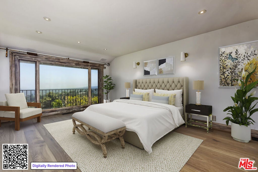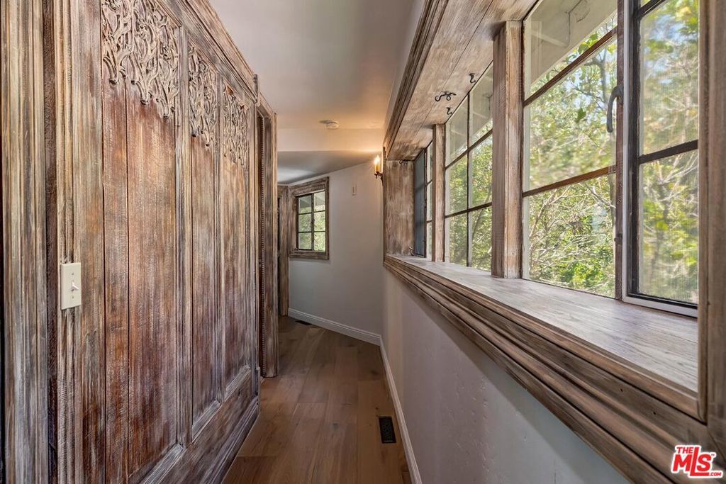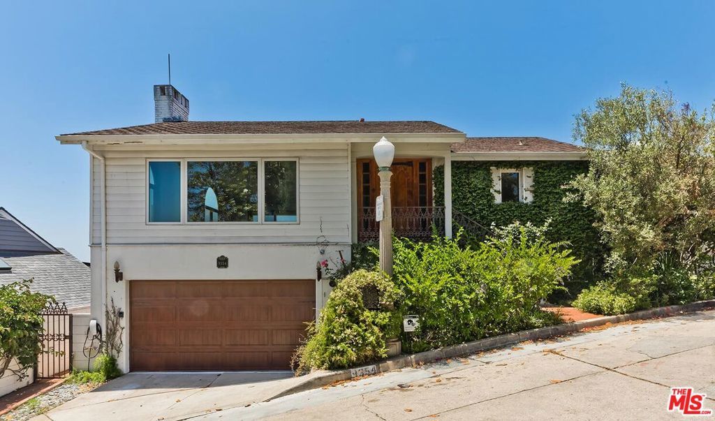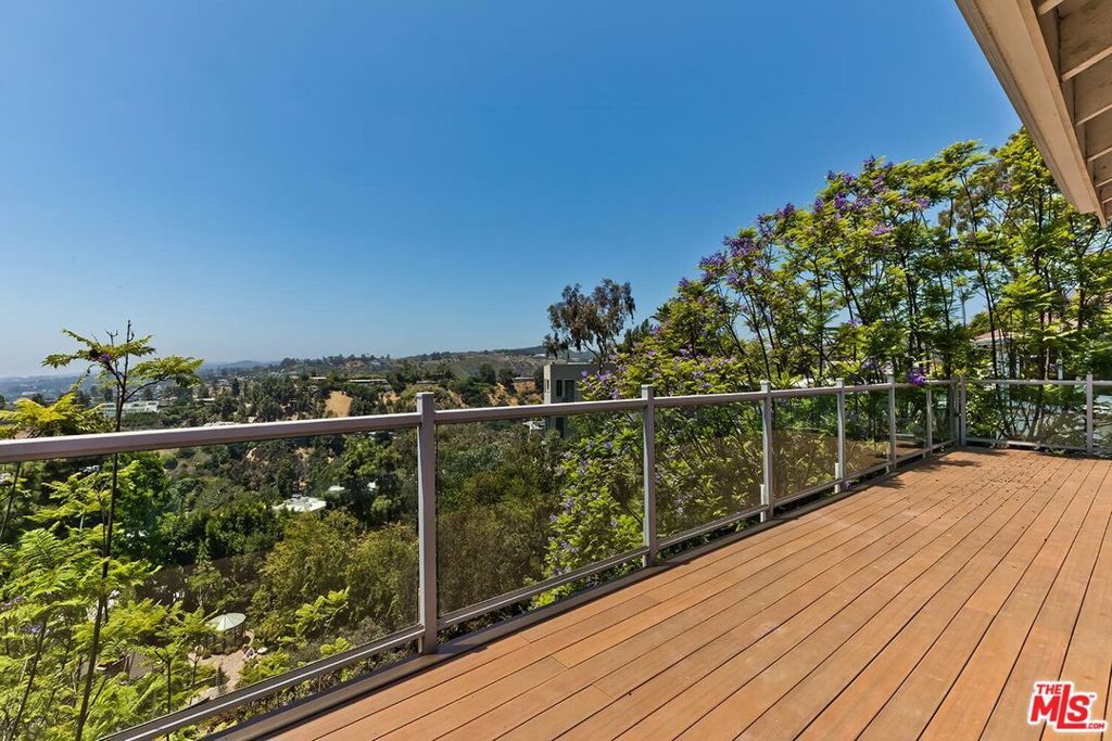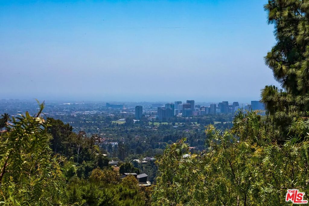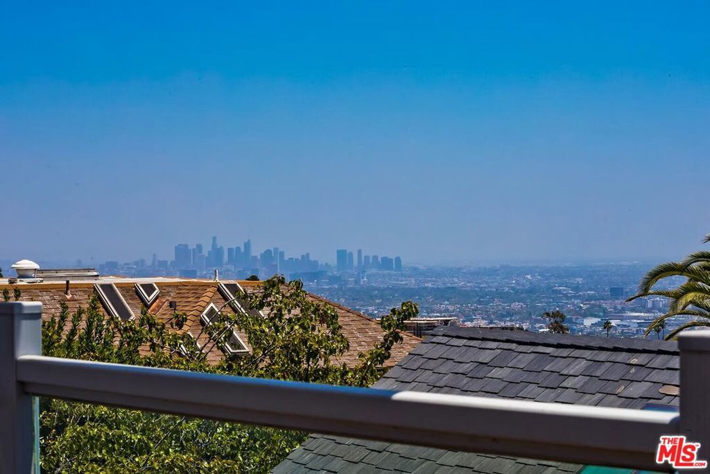 Designer Custom Home with Panoramic Views in Prime BHPO. Set high above the city in a peaceful, private enclave of the Beverly Hills Post Office, this striking 3BD + 3.5BA + Bonus Room Villa blends dramatic design with modern luxury, and a highly flexible floorplan. Designed by a celebrity designer, the residence showcases custom quality woodwork and detailing like no other. The breathtaking 180 views of the city skyline, ocean, and canyons are showcased from every room. The expansive living room is filled with natural light and defined by soaring beamed ceilings, a stunning stone fireplace, and oversized windows framing Downtown LA and West Hollywood, including the Pacific Deign Center. It flows seamlessly into the dining area and out to the entertainer's dream deck, spanning nearly the entire length of the home, offering unobstructed panoramic vistas including Century City, the ocean, the Getty Center and canyons, and effortless indoor/outdoor living. The chef's kitchen is outfitted with high-end stainless steel appliances, abundant cabinetry, stylish tile flooring, and a bay window with hillside views, plus direct access to the deck for morning coffee or al fresco dining. The luxurious primary suite is a true retreat, featuring a wall-to-wall window of view, a massive walk-in dressing room with custom built-ins and an additional wall of closets. The beautifully renovated spa-like en-suite primary bathroom includes double sinks, intricate tilework, and a soaking tub set within the shower, all overlooking the treetops and skyline. The main level also includes a light-filled second bedroom with built-ins, a fully renovated hall bath with skylight, and a chic powder room with custom paint. Downstairs has en-suite third room with more views and renovated bathroom, as well as the laundry room and Bonus room, ideal for a home office, creative studio, or gym. Other great features include Gothic inspired architectural detail, beautiful hardwood floors throughout, dual zone HVAC, lush greenery including a variety of fruit trees and direct access garage with extensive storage and rubberized flooring for another in-home gym option. Located on a peaceful cul-de-sac street, surrounded by prestigious estate properties and offering effortless access to Beverly Hills, West Hollywood, the Valley, and the Westside, this one-of-a-kind residence delivers privacy, scale, architectural pedigree, and unforgettable indoor/outdoor entertaining.