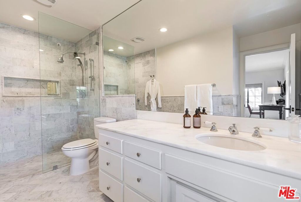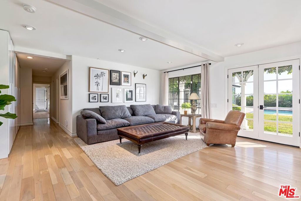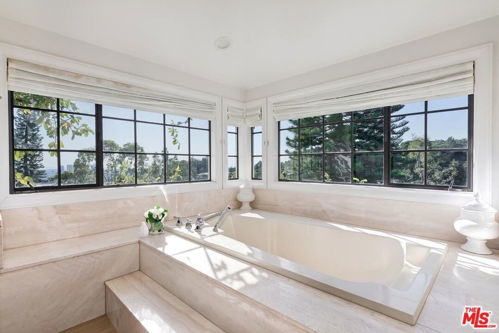Available furnished | Short-term preferred. Rarely available in prestigious Trousdale Estates, this elegant two-story traditional residence offers expansive interiors, sweeping canyon and city views, and exceptionally large, lush grounds a true rarity in this coveted Beverly Hills enclave. Fully furnished and turnkey, the home is ideally suited for executive, relocation, or holiday residency. Set on an unusually generous lot for Trousdale, the property is defined by its expansive lawn, mature landscaping, and oversized pool with spa/jacuzzi, creating a private garden-estate atmosphere seldom found in the neighborhood. The scale and usability of the outdoor areas offer an ideal setting for entertaining, family gatherings, or quiet relaxation surrounded by greenery. A dramatic double-height entry introduces approximately 5,500 square feet of light-filled living space designed for both elegant entertaining and comfortable family living. Formal living and dining rooms feature timeless architectural detailing and fireplaces, while multiple French doors open seamlessly to terraces and gardens. The chef's kitchen is equipped with premium appliances, stone countertops, custom cabinetry, and a generous center island, flowing naturally into casual dining and family areas with direct backyard access for effortless indoor-outdoor living. A richly detailed wood-paneled office/library with fireplace provides an exceptional work-from-home environment. The home also features two separate TV/media rooms an upstairs intimate lounge and a large lower-level media room with fireplace offering ideal spaces for relaxation, screening, or family living. A dedicated massage/wellness room adds to the home's comfort and lifestyle amenities. The expansive primary suite features vaulted ceilings, fireplace, sitting area, dual bathrooms, generous closets, television, and a spa-style jacuzzi soaking tub, along with a private terrace overlooking lush grounds and city views. Secondary bedrooms are well-proportioned and thoughtfully positioned for privacy and comfort. Additional highlights include four fireplaces, three-car garage, and multiple indoor and outdoor living areas designed for refined yet relaxed living. With its rare two-story layout, substantial interior volume, and beautifully landscaped grounds, this furnished Trousdale estate offers privacy, scale, and a true garden setting just moments from the heart of Beverly Hills and the Sunset Strip. he heart of Beverly Hills and the Sunset Strip.