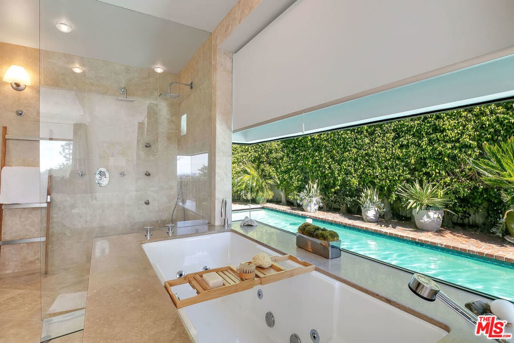 Live as though you are staying at the iconic Chateau Marmont Hotel. Private European-inspired single-story hideaway with a heated pool and city views. Nestled above the famed Chateau Marmont Hotel, minutes from the Sunset Strip with A-list celebrity neighbors on a quiet non-through street at the top of Marmont Avenue. Enter through a hand-carved wooden gate with code access to an enchanting koi pond and sounds of soothing rippling water. Mid-century architecture with walls of glass invite year round sunlight and a romantic luminous warmth. Single-level open floor plan for easy living. Well appointed primary bedroom adjacent a private, heated lap pool with city views (from bed), large walk-in closet, black-out drapes, double vanity, shower, jetted soaking tub and bidet. This special home checks all the boxes: gated and secure, informal and formal living rooms, open kitchen, dining room, petite wine cellar, gas burning fireplace, wet bar, powder, 3 beds en-suite, pool, multiple outdoor sitting areas, outdoor BBQ, city views, 2-car garage with EV charger, Sonos, surround sound, multiple cameras for security and other smart home technology. Simply put, this darling home offers the highest form of California living. List price reflects a 1-year furnished rental. Short term rates are as follows: 20k/mo for 3 months, 18k/mo for 6 months. Utilities are not included in list price. Call for pets. Also available unfurnished for the same rate. Property is tenant occupied until Feb 28, 2026. See agent remarks for showing instructions.