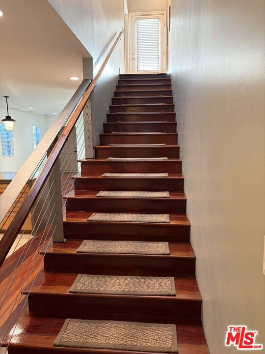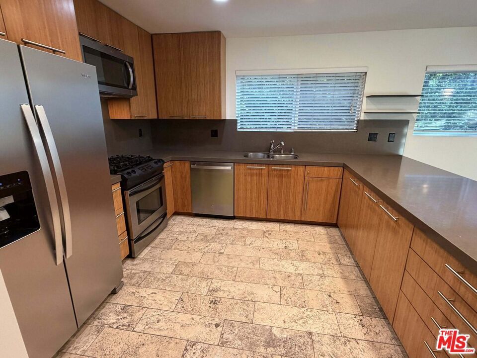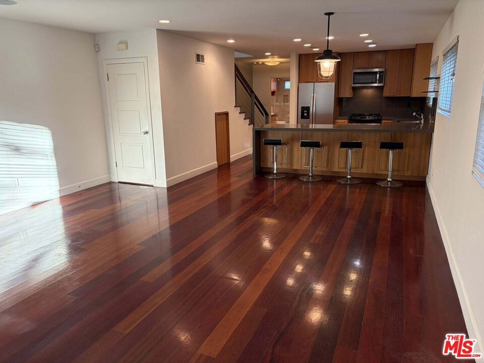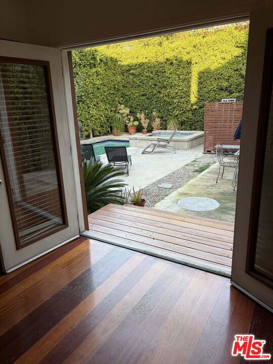 Wonderful and spaciously modern two story townhouse for lease. Two bedrooms with primary on the second level which has a large full balcony. Second guest bedroom on the first level is next to a full bathroom which includes a tub. The guest bedroom has French doors which open onto a lovely garden and pool with spa. New appliances in the kitchen which also features a longer than usual breakfast bar and four stools which come with the rental. Stackable washer and dryer are convenient to the kitchen area in their own closet. Central air and heat. Primary bedroom walk-in closet has wonderful built-ins ready for your clothing and double sink full bath ensuite to the bedroom. More closets in hall.
