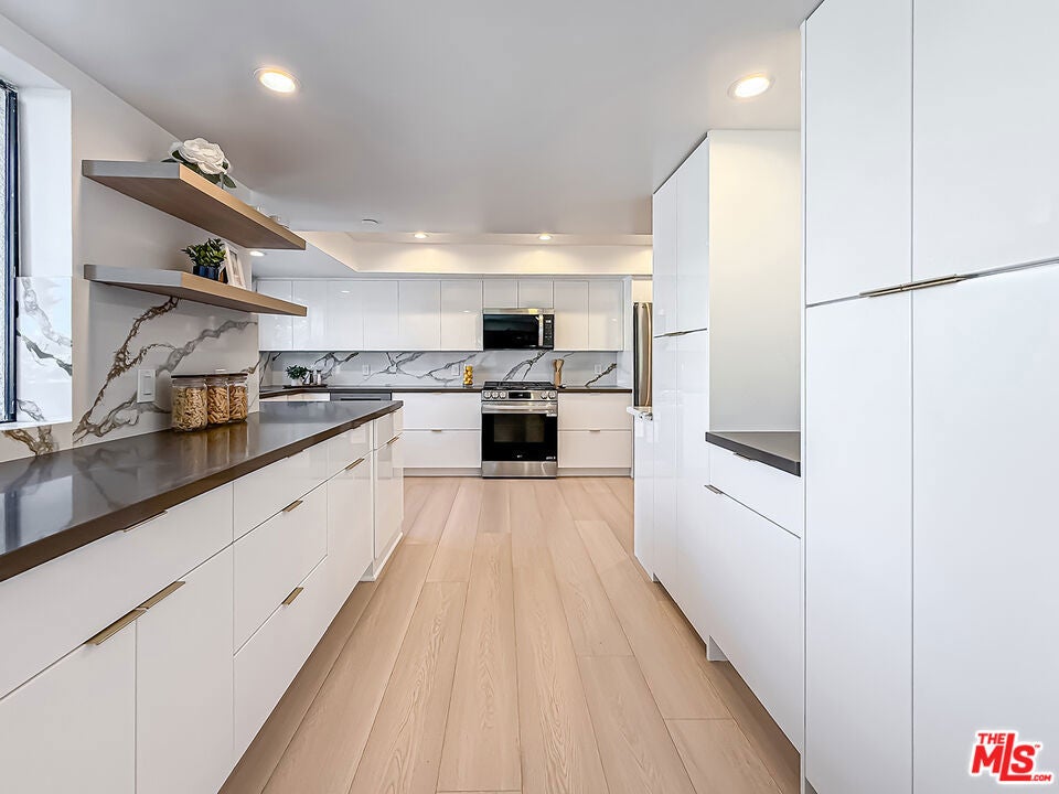 Rare, completely remodeled Santa Monica gem in one of the city's most desirable and walkable locations, just steps from the beach, Palisades Park, and the Third Street Promenade and an ideal Westside home for Pacific Palisades residents seeking to stay close to their community. Perched on the third floor, this front-facing residence blends modern sophistication with a level of convenience rarely found in the area. In a city known for challenging stairs, this home offers an effortless, turnkey lifestyle with not a single step from your parking garage to your front door. The elegant interior features high-end finishes, a cozy fireplace, and 29 feet of expansive, front-facing living and dining space with wrap-around balconies for seamless coastal living. The thoughtfully designed floor plan offers two spacious bedrooms, two full bathrooms, and a stylish half-bath for guests. Private balconies extend from every major room, filling the home with natural light and ocean breezes. Additional highlights include an in-unit washer/dryer, two side X side parking spaces, a gated garage, and a community pool. This stunning residence delivers the perfect blend of luxury and total accessibility in the heart of Santa Monica. Also available for lease at $8499 per month