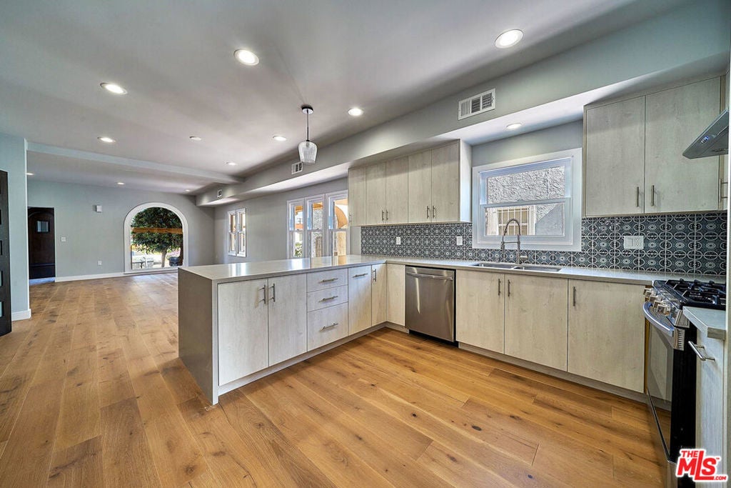 Beautifully remodeled unit in Miracle Mile. Completely redesigned and remodeled interior from the ground up. Spacious open kitchens with grey marble island, perfect for entertaining guests or having breakfast with the family. Modern bathrooms with plenty of closet and cabinet space throughout both units. Main unit has an office overlooking the backyard pool. New plumbing, electrical systems, HVAC, custom cabinets, and floors. Ready to move in right away. Comes equipped with new appliances including range/oven, washer/dryer.