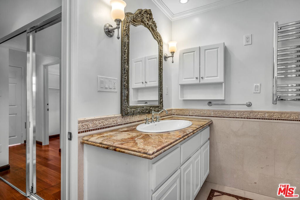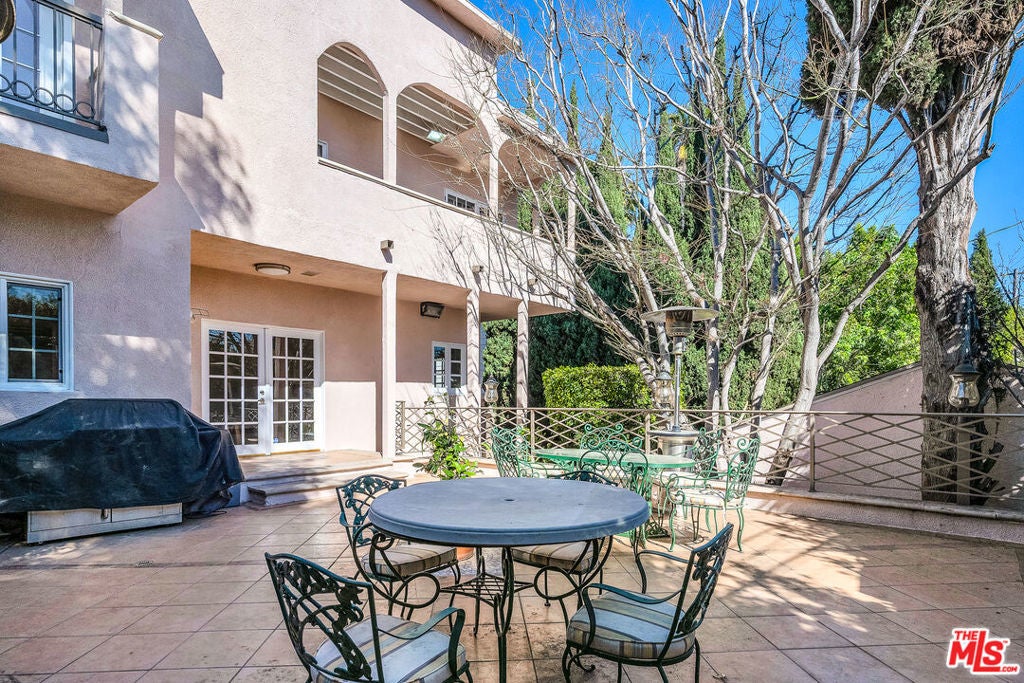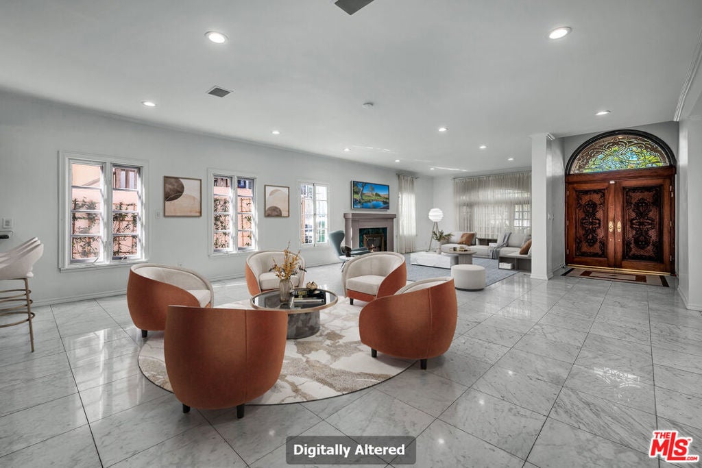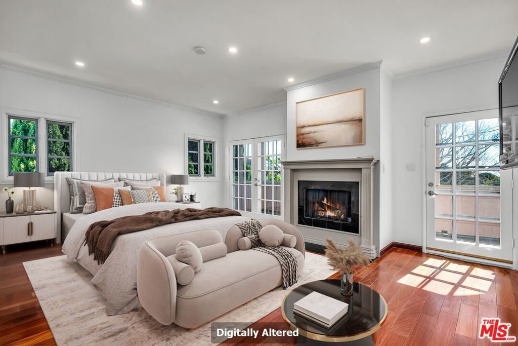 Nestled in the prestigious neighborhood of Westwood, this elegant Contemporary Mediterranean estate offers over 4,500 square feet of refined living space designed with a perfect balance of grand scale and soulful warmth. The journey begins in a breathtaking entry foyer where dramatic soaring ceilings, etched-glass double doors, and a grand chandelier set a sophisticated tone that carries throughout the home. Designed for both seamless entertaining and comfortable daily life, the formal living and dining areas flow effortlessly into an airy family room anchored by a timeless fireplace and custom built-ins, with French doors opening to patio and backyard. The expansive chef's kitchen serves as the heart of the home, featuring granite countertops, a center island, and generous storage to accommodate any culinary endeavor. Upstairs, a sweeping staircase leads to t bedrooms, including spacious guest suites with walk-in closets and a luxurious primary suite that serves as a true sanctuary, complete with its own private balconies, an inviting fireplace, dual walk-in closets, and a spa-like bathroom featuring a soaking tub and a private sauna for ultimate relaxation. This residence is complemented by a dedicated laundry room and abundant storage, all situated in a prime central location just minutes from the world-class dining and shopping.