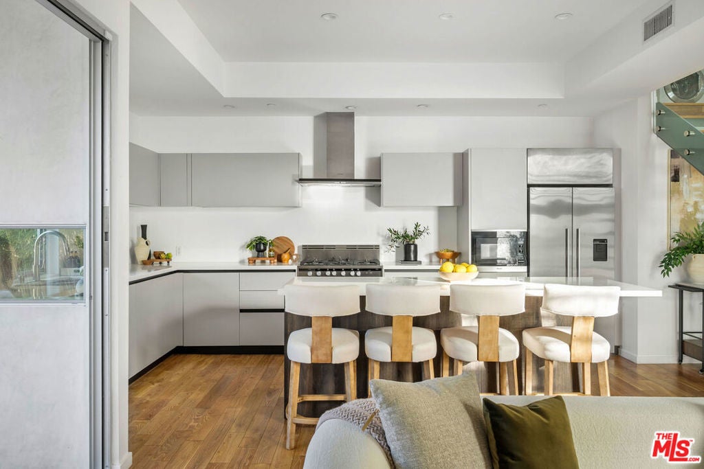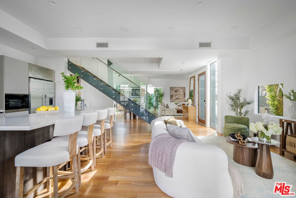 Set behind gates in prime West Hollywood West, this newer modern residence is designed for effortless indoor-outdoor living and elevated entertaining. A private, maturely landscaped setting creates a true sense of retreat, while terraces, a resort-style pool and spa, and a built-in fire pit make the outdoor spaces as compelling as the interiors.The open, contemporary layout flows seamlessly to multiple entertaining areas, ideal for hosting. Lush landscaping and thoughtful orientation provide exceptional privacy throughout. Located in one of WeHo's most walkable neighborhoods, just moments from the area's best restaurants, boutiques, and nightlife, and steps from Beverly Hills, this is a rare opportunity to own a gated modern home in one of Los Angeles' most coveted enclaves.