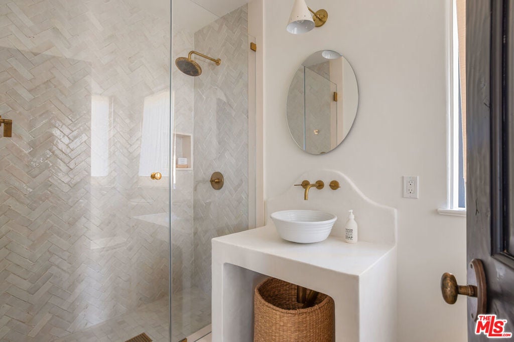 Timeless Elegance in the Enclave of Pacific Palisades! Designed by Katie Hodges, this fully remodeled 4-bedroom, 6-bathroom estate blends refined interiors with resort-style living in the exclusive gated Enclave. The thoughtfully designed layout includes an en-suite guest bedroom downstairs and a luxurious upstairs primary retreat with sweeping views, spa-like bath, plus two additional bedrooms and a large bonus room. Set on over half an acre with tastefully designed manicured grounds, the home features Venetian and European plaster, White Oak floors, Calcutta Gold kitchen countertops, Sub-Zero and Wolf appliances, Waterworks/Kallista fixtures, and custom built-ins. The outdoor oasis includes a resurfaced 50-ft lap pool with Baja shelf, updated spa, fire pit, Al Fresco kitchen including bbq, pizza oven, refrigerator with bar seating and redesigned lighting.The approx. 2,000 sq ft epoxy-coated garage fits 6 cars and includes a Tesla charger, wine cellar, gym/music room, and extra storage. Additional upgrades: Control4 system, water filtration, security cameras, integrated speakers, 4 HVAC zones with air scrubber, and designer finishes throughout. A rare and refined retreat just minutes from the beach & all that West coast living has to offer.