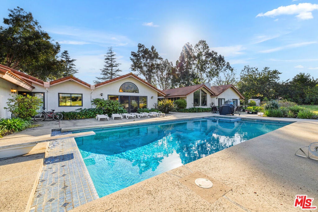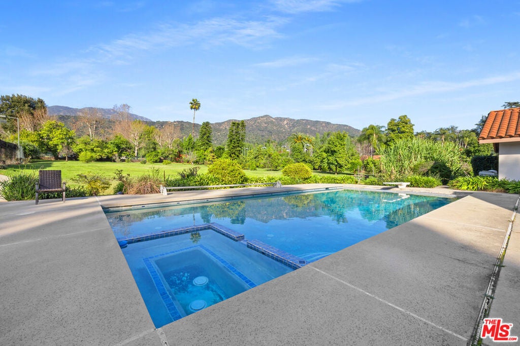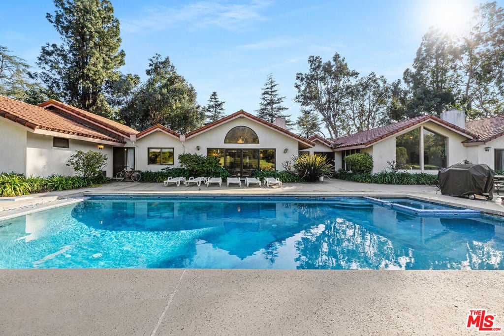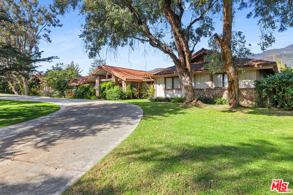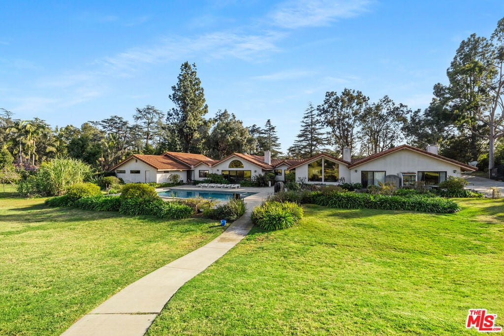 Elegant Spanish-Style Estate in Prestigious Bradbury Estates. Discover the rare opportunity to own a timeless single-story Spanish-style residence in the exclusive, guard-gated community of Bradbury Estates. Set on 2.35 acres of beautifully landscaped grounds, this 4-bedroom, 5-bathroom home blends classic architectural charm with modern comfort, offering an exceptional lifestyle in one of Southern California's most sought-after enclaves. Step inside the 3,962 sq. ft. residence and experience a bright, airy interior enhanced by floor-to-ceiling windows that frame sweeping views of the backyard and Mount Hood. The home's thoughtful layout features elegant limestone and carpeting, generous living spaces, and seamless indoor-outdoor flow. At the heart of the home sits a large gourmet kitchen, complete with a breakfast bar, granite countertops, and premium KitchenAid appliances, perfectfor both everyday living and entertaining. Outside, the estate truly shines. A horseshoe driveway creates a grand arrival experience, while the expansive grounds offer resort-style amenities, including a swimming pool, tennis court, and a lush orchard of mature fruit trees, featuring avocados, almonds, citrus, peaches, pears, and more. Whether you're hosting gatherings or enjoying quiet mornings, the outdoor spaces invite relaxation and recreation. Additional features include:* Red tile roof enhancing the home's Spanish character *3-car garage with built-in storage *Two water heaters and two air conditioning units for year-round comfort *Generac Generator *Located within a 24/7 guard-gated community for privacy and peace of mind. This exceptional property offers a rare blend of privacy, elegance, and natural beauty, an ideal retreat for those seeking space, serenity, and timeless style.