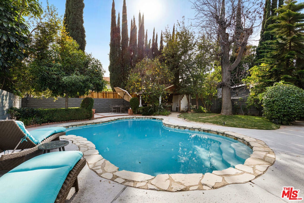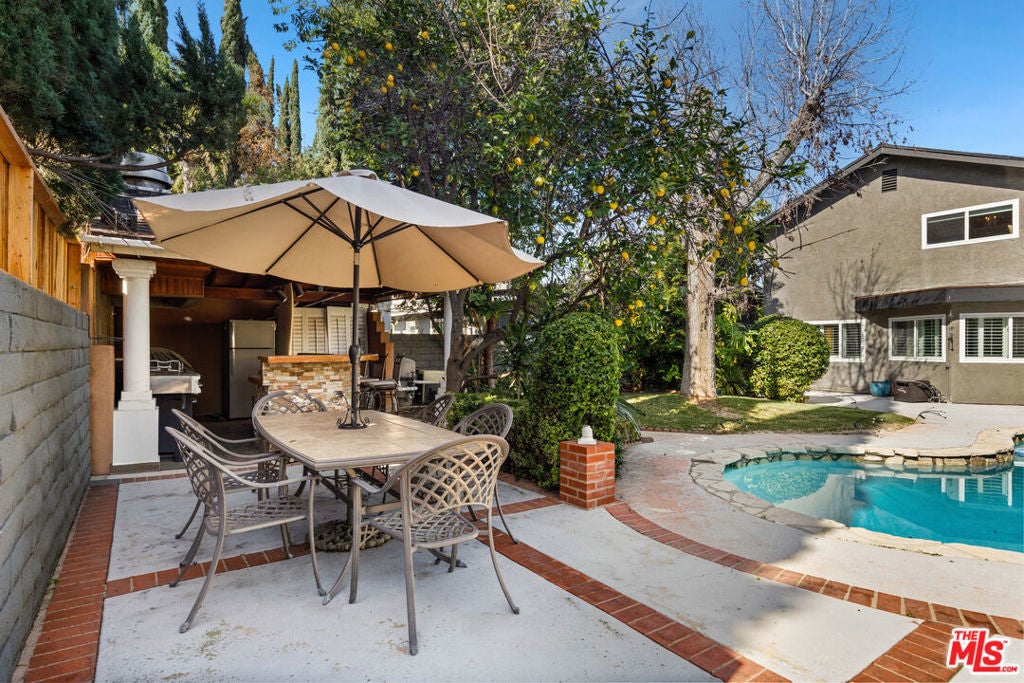 Welcome to your next home found in a fantastic, quiet tree-lined neighborhood of Winnetka! This stunning home features exceptional curb appeal, 4 bedrooms, 3 bathrooms, and approx 2,474 sq ft of living space! Immerse yourself with beautiful high-quality designer finishes throughout like the custom hand-carved Moroccan door, wide-plank oak floors, travertine entryway tiles, high vaulted ceilings with rich-stained wood beams, a gourmet kitchen with an abundant amount of storage, elegant railings, remodeled bathrooms, wood shutters, timeless light fixtures, and so much more. Love natural light? This home will be perfect for you with an abundance of light throughout the day. Work from home? Enjoy the perfect space for your home office fitted with chic wallpaper and french doors. Like to entertain? This home has the perfect backyard oasis with your full-size heated pool, mature fruit trees (including grapevines, figs, mango, lemon, and more), and covered outdoor kitchen area featuring Italian tiles. Need to step away from your sun-drenched open living area? Set foot into your 350+ sq ft bonus room featuring plush carpet and recessed lighting. This home is just a short drive away from Topanga Westfield Mall, Northridge Mall, CSUN, Porter Ranch outdoor mall, 4 miles from the Metrolink and Amtrak train stations, and much more so you won't find yourself short of things to do in the area. This IS one of the best homes with the best values in San Fernando Valley. Come see it before it's gone!